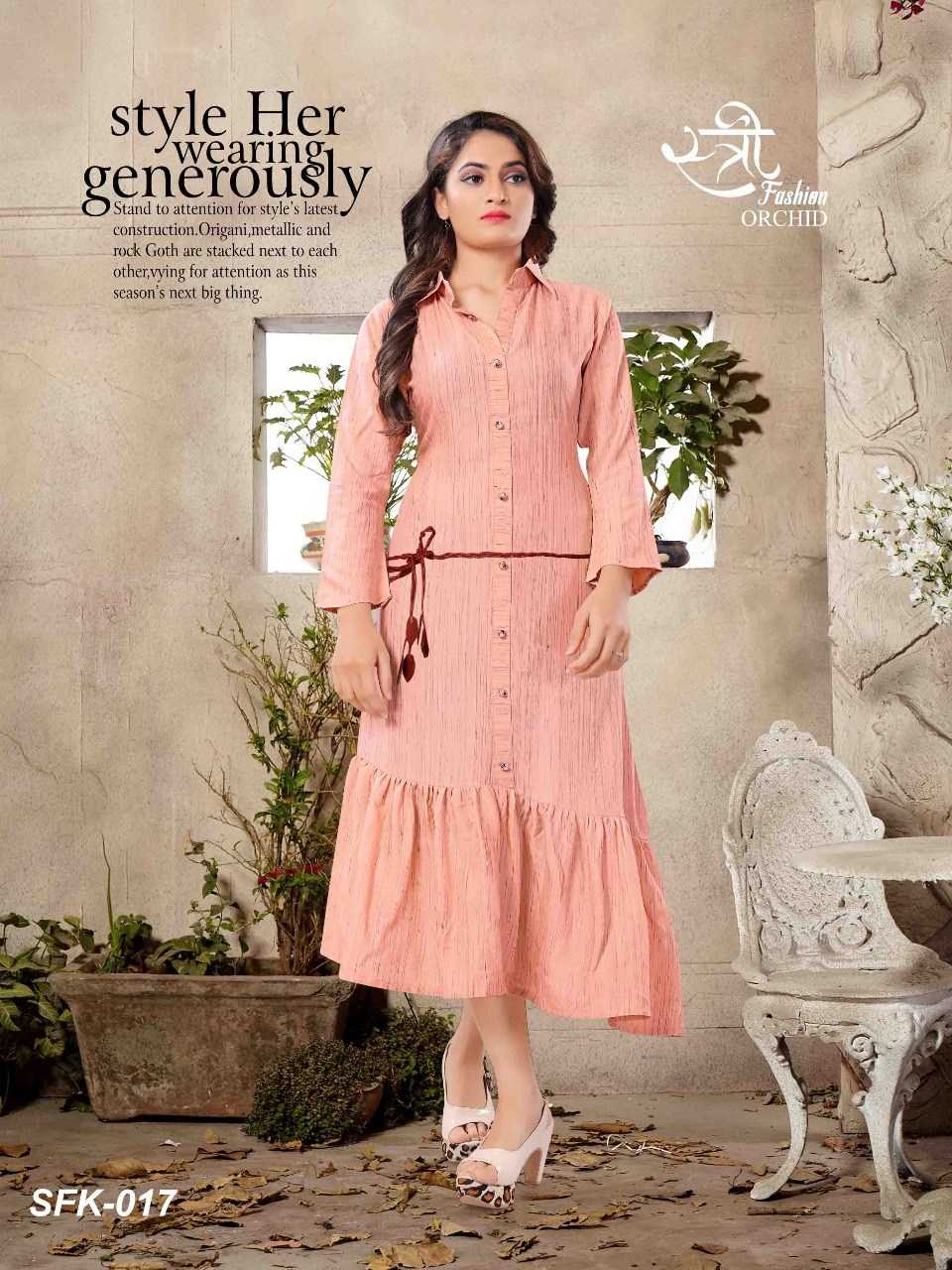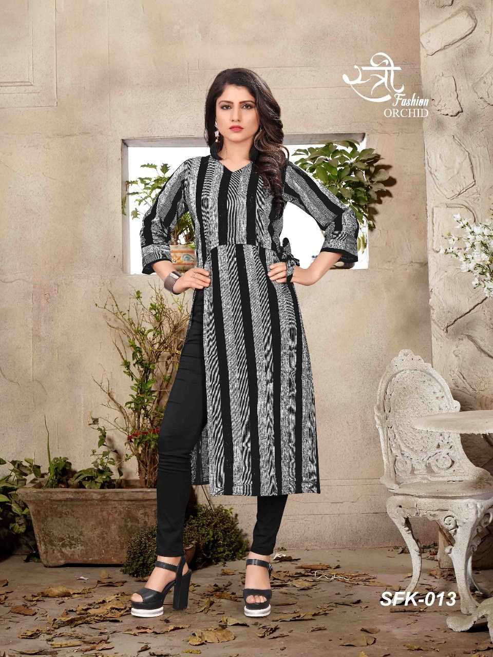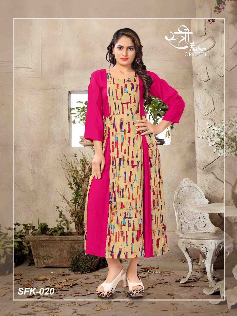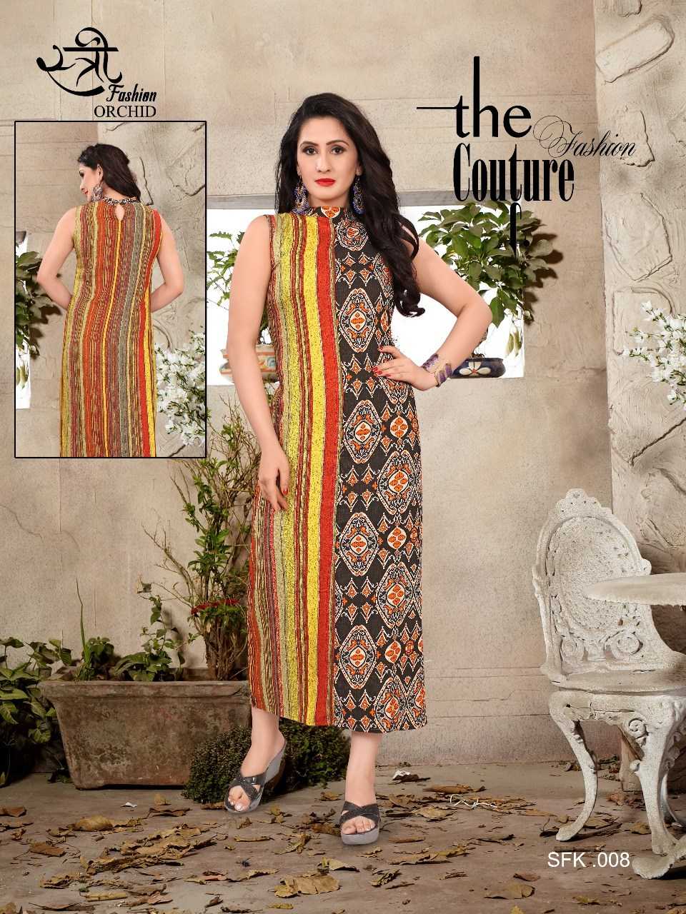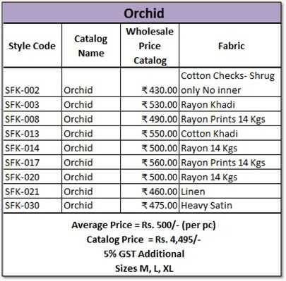 Buy Online Stree Orchid Fancy Desinger Kurtis Collection Catalog Wholesale Supplier And Dealer Gujarat 9 Pcs of Full Catalogue at Wholesale Price. Looking for Stree Orchid Fancy Desinger Kurtis Collection Catalog Wholesale Supplier And Dealer Gujarat Full Catalouge at Best Price? Buy Now Stree Orchid Fancy Desinger Kurtis Collection Catalog Wholesale Supplier And Dealer Gujarat at Wholesale Rate of Rs 4500 with Total 9 Pcs from authroized dealer and supplier of BRAND'S Brand. Cost of Each piece is just only Rs 500 which is very low and affordable price to resale the product in your retail store ,This is Surat based Wholesale Supplier & Dealer of BRAND'S Brand. Click on Brand name to Know more about BRAND'S Brand's products.Call or Whatsapp on 9898838984 for booking or enquiry