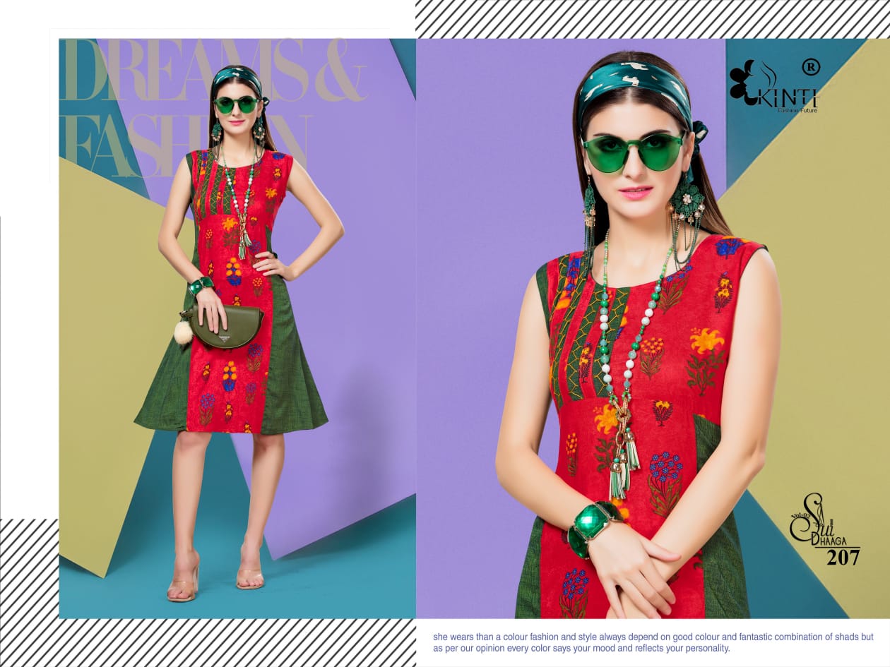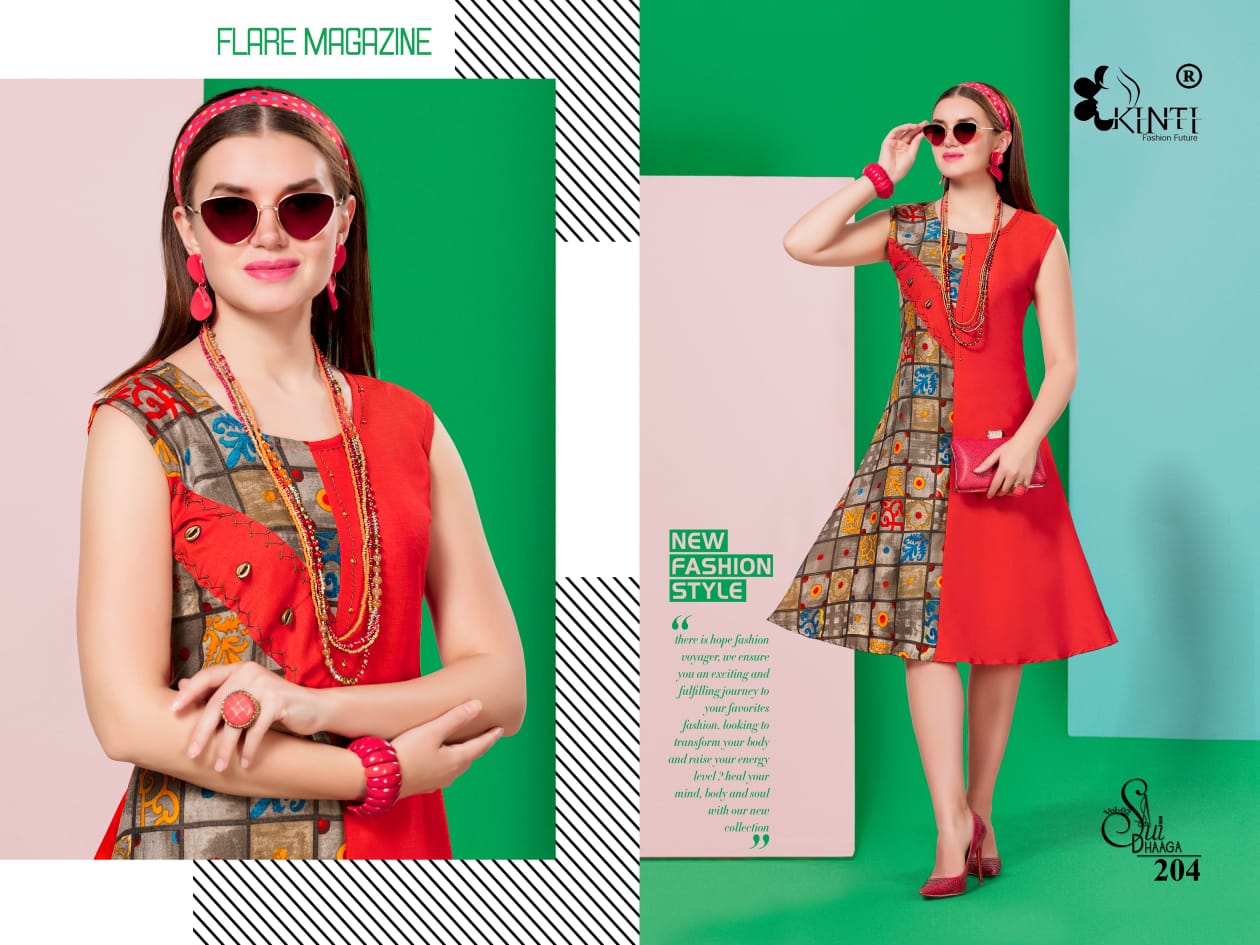*Sui Dhaaga 2* By *KINTI* ® Fabric. : *Rayon Print N Rayon two tone slub* Style. : *Mix N Match* *Stiching Patterns* *Hand Work* Lenght. : *40(approx)* Sleeves : *Short Sleeves Inside* Sizes : *S M L XL 2XL 3XL 4xl 5xl* Designs : *10* *Rate :- 365 + GST* |
