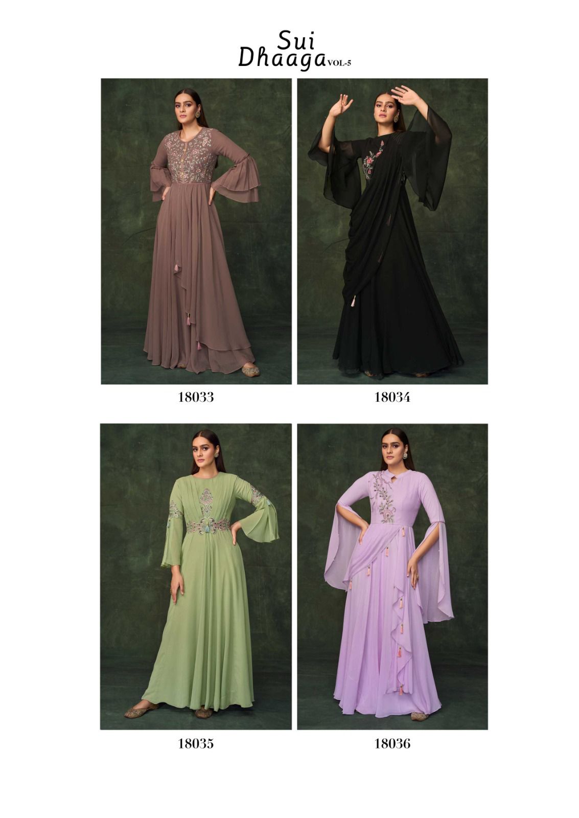 Buy Online Sui Dhaga Vol 5 By Vamika This Festival Season Presenting Exclusive Super Hit Series Designer Gown Series Collection 8 Pcs of Full Catalogue at Wholesale Price. Looking for Sui Dhaga Vol 5 By Vamika This Festival Season Presenting Exclusive Super Hit Series Designer Gown Series Collection Full Catalouge at Best Price? Buy Now Sui Dhaga Vol 5 By Vamika This Festival Season Presenting Exclusive Super Hit Series Designer Gown Series Collection at Wholesale Rate of Rs 0 with Total 8 Pcs from authroized dealer and supplier of Brand. Cost of Each piece is just only Rs 0 which is very low and affordable price to resale the product in your retail store ,This is Surat based Wholesale Supplier & Dealer of Brand. Click on Brand name to Know more about Brand's products.Call or Whatsapp on 9898838984 for booking or enquiry