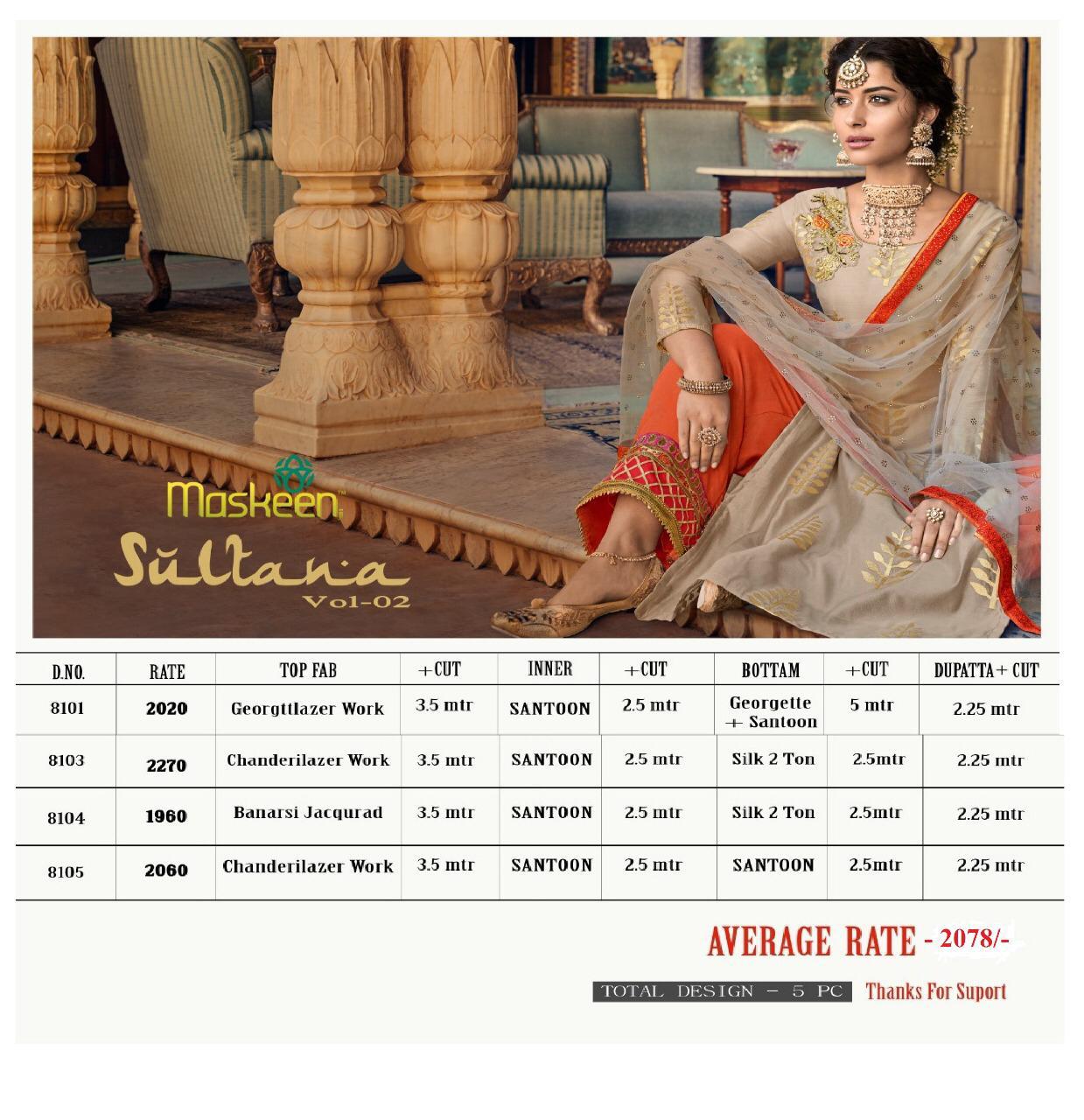 Brand - Maiisa Maskeen . Catlog Name - SULTANA Vol-2 Nx. Set & Loose & Singel . Single Extra 100 GST 5 Percent Extra. Delivery 3-4 days |