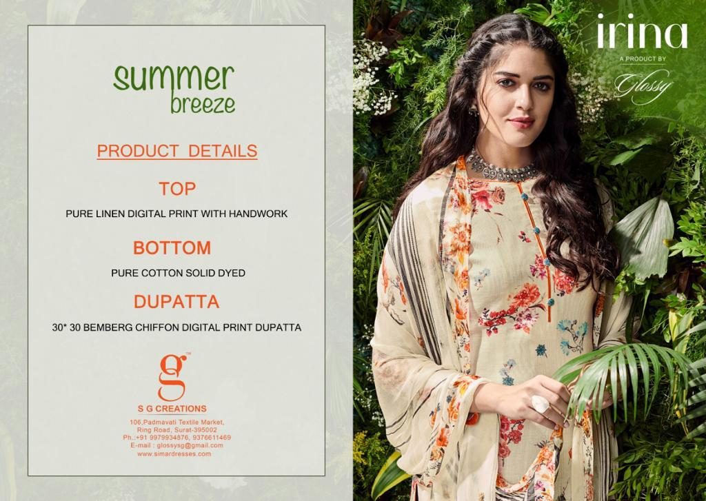 Buy Online Summer Brezer By Irina Linen Digital Printed Suits Wholesale Supplier India 9 Pcs of Full Catalogue at Wholesale Price. Looking for Summer Brezer By Irina Linen Digital Printed Suits Wholesale Supplier India Full Catalouge at Best Price? Buy Now Summer Brezer By Irina Linen Digital Printed Suits Wholesale Supplier India at Wholesale Rate of Rs 12555 with Total 9 Pcs from authroized dealer and supplier of Brand. Cost of Each piece is just only Rs 1395 which is very low and affordable price to resale the product in your retail store ,This is Surat based Wholesale Supplier & Dealer of Brand. Click on Brand name to Know more about Brand's products.Call or Whatsapp on 9898838984 for booking or enquiry