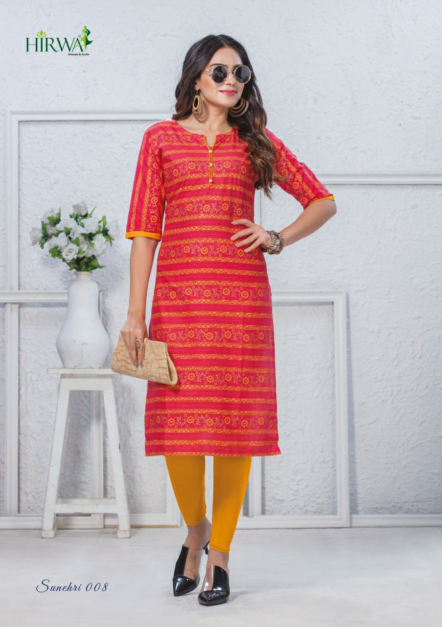 Buy Online Sunheri By Hirwa Kurtis Wholesale Supplier And Dealer Surat 8 Pcs of Full Catalogue at Wholesale Price. Looking for Sunheri By Hirwa Kurtis Wholesale Supplier And Dealer Surat Full Catalouge at Best Price? Buy Now Sunheri By Hirwa Kurtis Wholesale Supplier And Dealer Surat at Wholesale Rate of Rs 1720 with Total 8 Pcs from authroized dealer and supplier of BRAND'S Brand. Cost of Each piece is just only Rs 215 which is very low and affordable price to resale the product in your retail store ,This is Surat based Wholesale Supplier & Dealer of BRAND'S Brand. Click on Brand name to Know more about BRAND'S Brand's products.Call or Whatsapp on 9898838984 for booking or enquiry