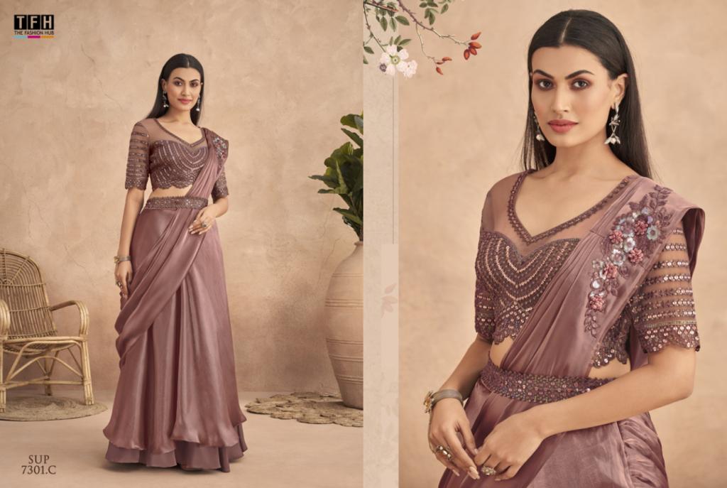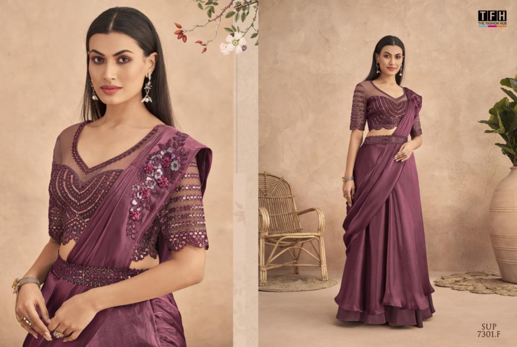 Super Star 7301 Colours By Tfh Party Wear Saree With Belt Wholesaler Supplier Surat