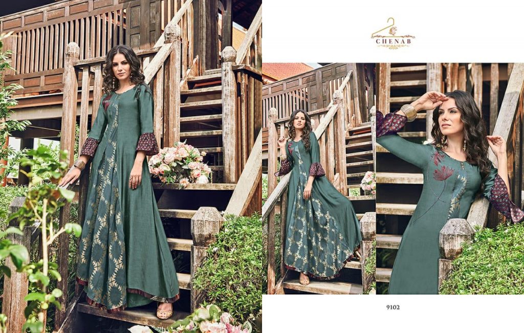 Swagat Chenab Series 9101 To 9109 Fancy Designer Party Wear Kurtis Wholesale Supplier Gujarat