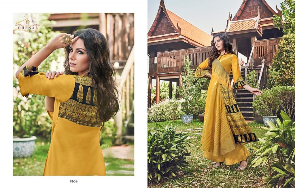 Buy Online Swagat Chenab Series 9101 To 9109 Fancy Designer Party Wear Kurtis Wholesale Supplier Gujarat 9 Pcs of Full Catalogue at Wholesale Price. Looking for Swagat Chenab Series 9101 To 9109 Fancy Designer Party Wear Kurtis Wholesale Supplier Gujarat Full Catalouge at Best Price? Buy Now Swagat Chenab Series 9101 To 9109 Fancy Designer Party Wear Kurtis Wholesale Supplier Gujarat at Wholesale Rate of Rs 12321 with Total 9 Pcs from authroized dealer and supplier of SWAGAT Brand. Cost of Each piece is just only Rs 1369 which is very low and affordable price to resale the product in your retail store ,This is Surat based Wholesale Supplier & Dealer of SWAGAT Brand. Click on Brand name to Know more about SWAGAT Brand's products.Call or Whatsapp on 9898838984 for booking or enquiry