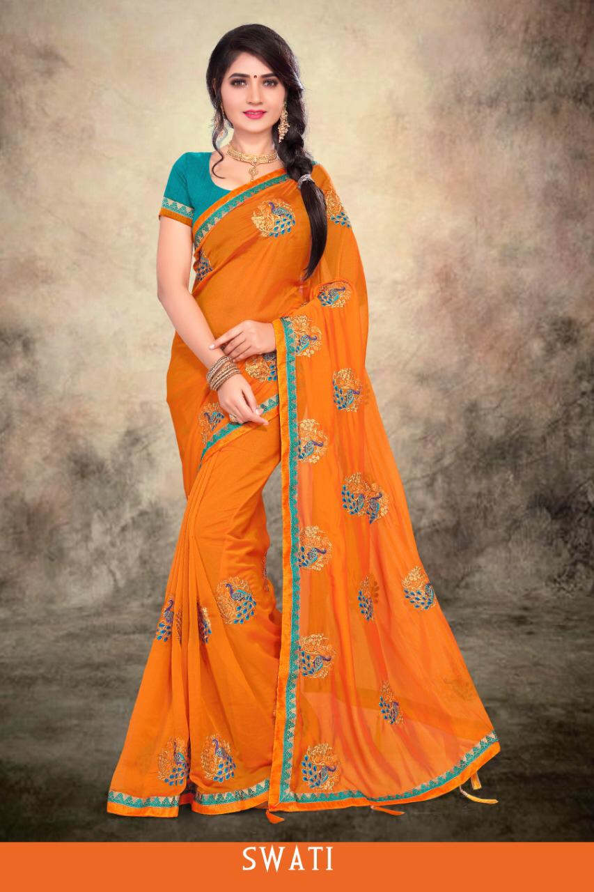 Buy Online Swati By Right One Fancy Party Wear Saree Collection Wholesale Dealer Surat 6 Pcs of Full Catalogue at Wholesale Price. Looking for Swati By Right One Fancy Party Wear Saree Collection Wholesale Dealer Surat Full Catalouge at Best Price? Buy Now Swati By Right One Fancy Party Wear Saree Collection Wholesale Dealer Surat at Wholesale Rate of Rs 4410 with Total 6 Pcs from authroized dealer and supplier of Right one Brand. Cost of Each piece is just only Rs 735 which is very low and affordable price to resale the product in your retail store ,This is Surat based Wholesale Supplier & Dealer of Right one Brand. Click on Brand name to Know more about Right one Brand's products.Call or Whatsapp on 9898838984 for booking or enquiry