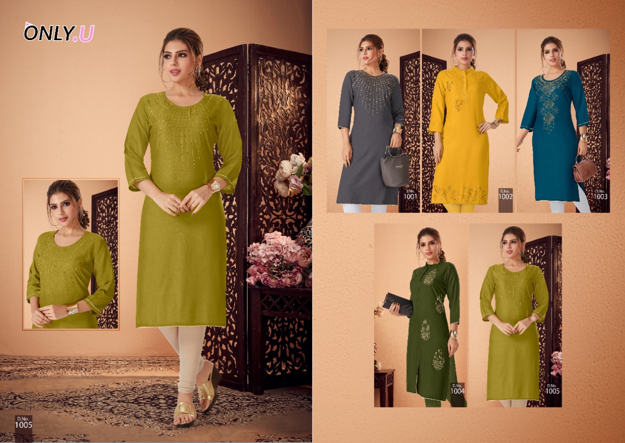 Buy Online Swoski By Only U Reyon Kurtis Wholesale Supplier Gujarat 5 Pcs of Full Catalogue at Wholesale Price. Looking for Swoski By Only U Reyon Kurtis Wholesale Supplier Gujarat Full Catalouge at Best Price? Buy Now Swoski By Only U Reyon Kurtis Wholesale Supplier Gujarat at Wholesale Rate of Rs 2245 with Total 5 Pcs from authroized dealer and supplier of BRAND'S Brand. Cost of Each piece is just only Rs 449 which is very low and affordable price to resale the product in your retail store ,This is Surat based Wholesale Supplier & Dealer of BRAND'S Brand. Click on Brand name to Know more about BRAND'S Brand's products.Call or Whatsapp on 9898838984 for booking or enquiry