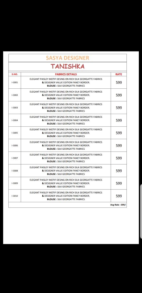 Buy Online Tanishka By Sasya Designer Printed Sarees Wholesale Supplier Nd Dealer India 10 Pcs of Full Catalogue at Wholesale Price. Looking for Tanishka By Sasya Designer Printed Sarees Wholesale Supplier Nd Dealer India Full Catalouge at Best Price? Buy Now Tanishka By Sasya Designer Printed Sarees Wholesale Supplier Nd Dealer India at Wholesale Rate of Rs 5990 with Total 10 Pcs from authroized dealer and supplier of BRAND'S Brand. Cost of Each piece is just only Rs 599 which is very low and affordable price to resale the product in your retail store ,This is Surat based Wholesale Supplier & Dealer of BRAND'S Brand. Click on Brand name to Know more about BRAND'S Brand's products.Call or Whatsapp on 9898838984 for booking or enquiry