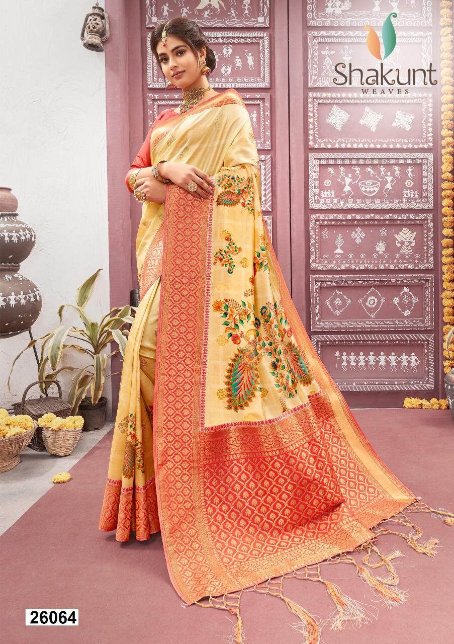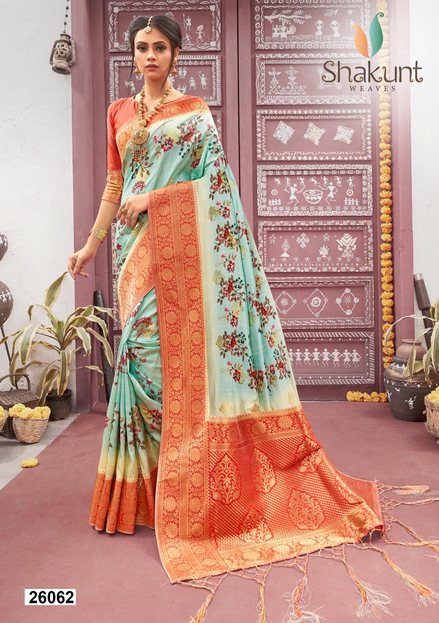 CATALOG:TANUSHREE RS.1651 BRAND:SHAKUNT PIECE:4 FABRIC:SILK WEAVING DIGITAL PRINT Set to set. GST 5 Percent Extra. Delivery from today |