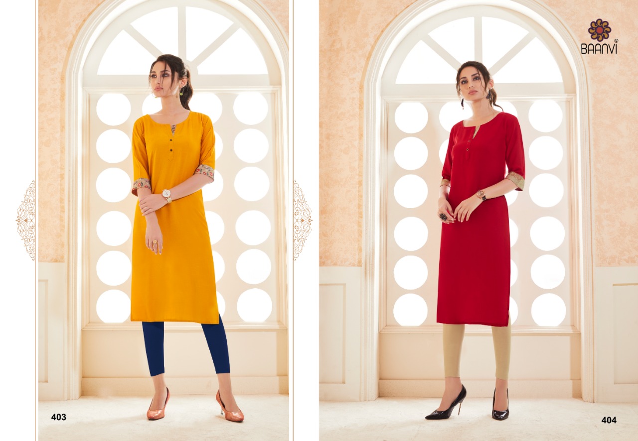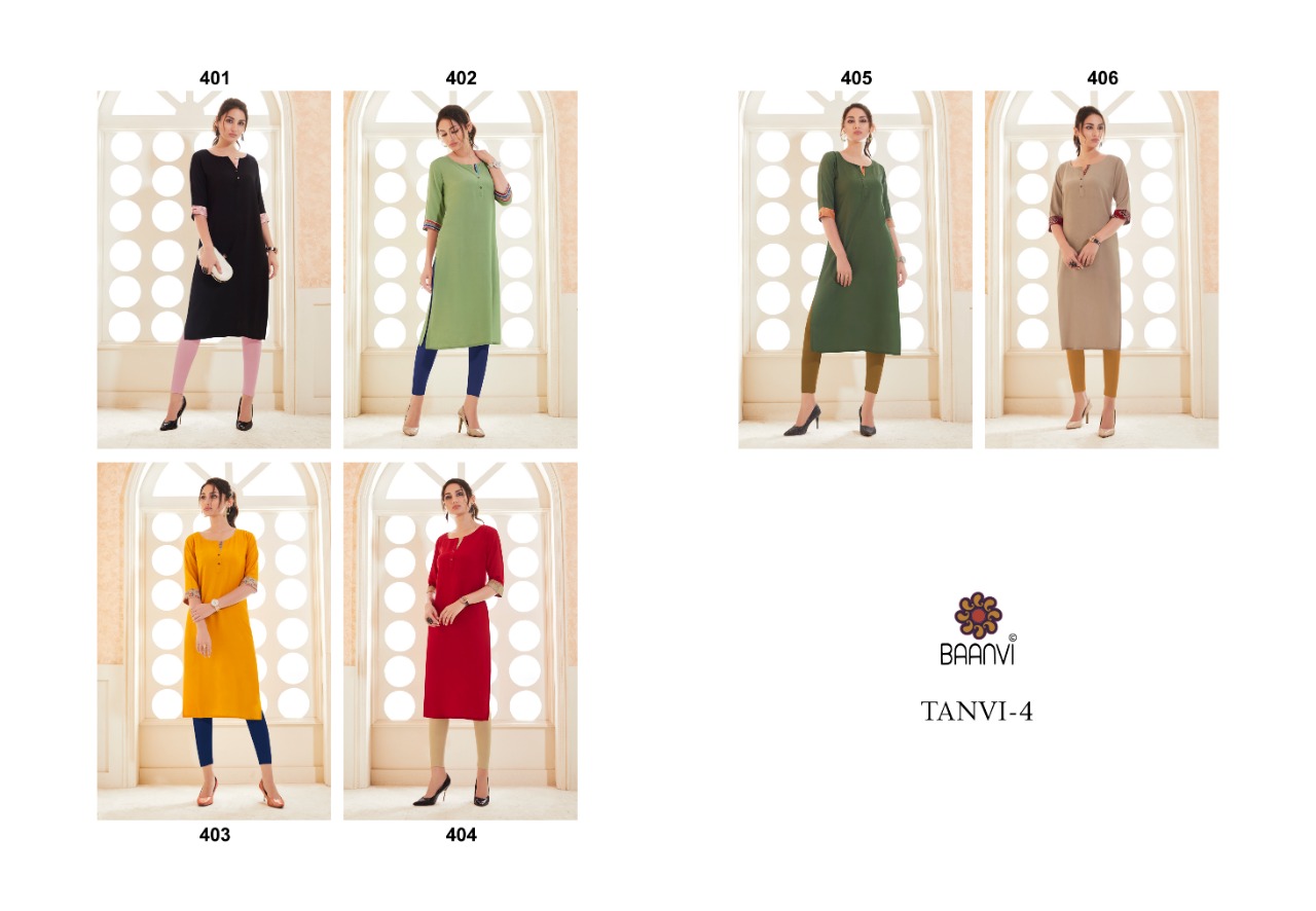 Tanvi Vol 4 By Baanvi Reyon Slub Kurtis Collecotion Wholesale Supplier And Dealer Surat