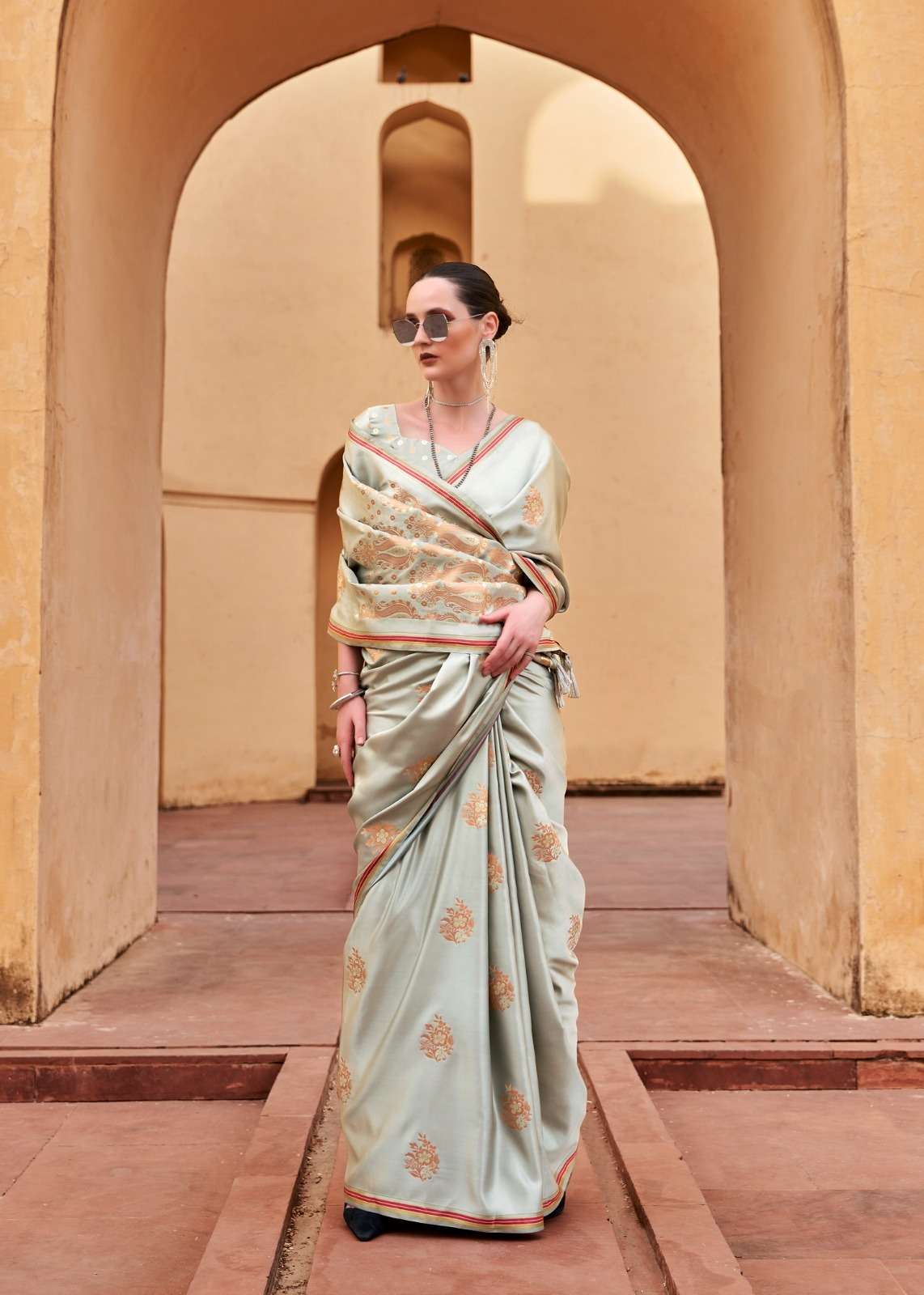 ➡️Fabric:- *Pure Sattin With Copper Zari Weaving*