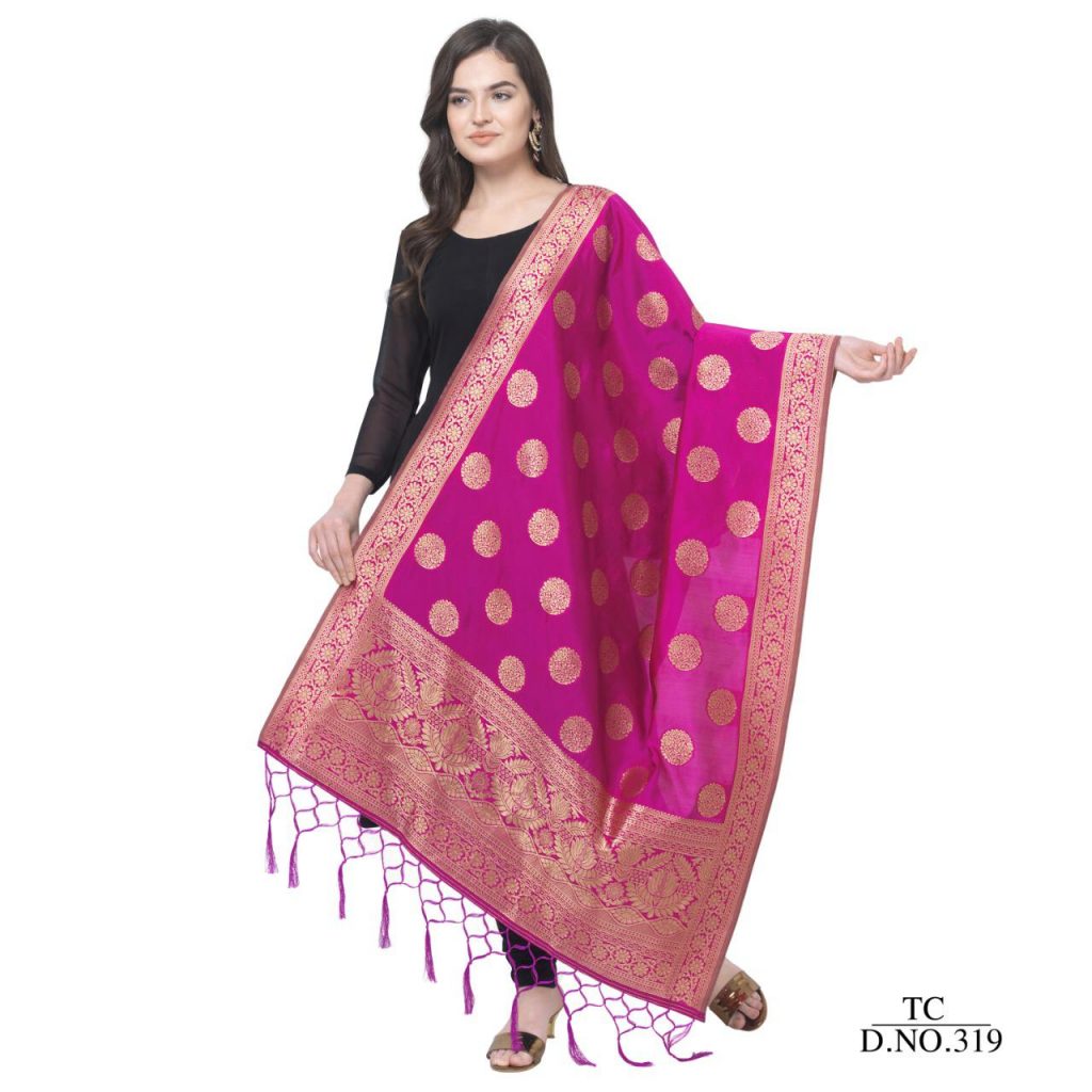 Brand - TC Banarasi Silk Dupatta FABRIC : Banarasi Silk TOP: 2.20 mtr Panna: 36 inch FABRICS:Tapeta (2.20 Mtr) | Panna-36 PRODUCT WEIGHT :- 210 GRAM TOTAL DESIGN :20 Singel Pcs . Series - 301 to 320 * Only Duptta * Please note . * Singel Pcs Available * PER PIECE RATE : 250 Single extra 100 GST 5 Percent Extra. Delivery from tomorrow |