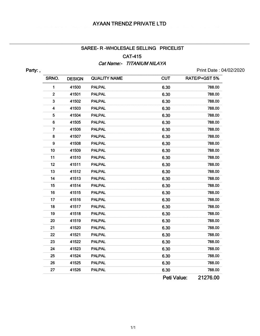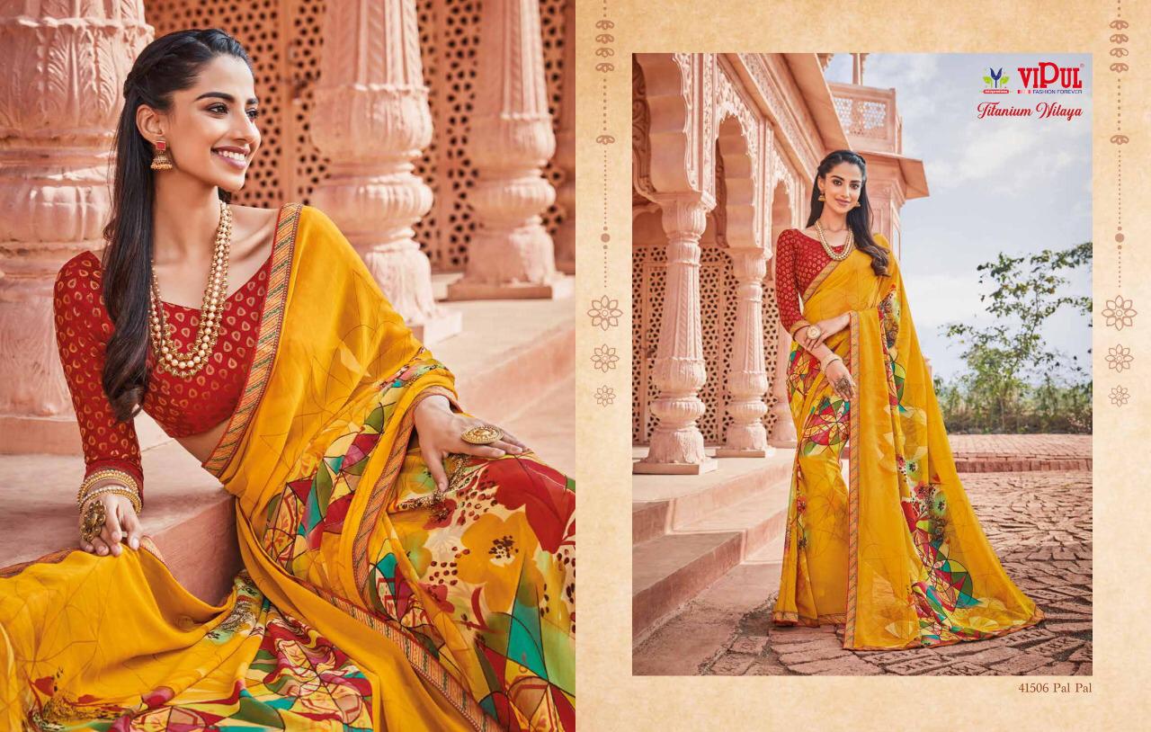 Buy Online Titanium Nilaya By Vipul Sarees Wholesale Supplier And Dealer Gujarat 0 Pcs of Full Catalogue at Wholesale Price. Looking for Titanium Nilaya By Vipul Sarees Wholesale Supplier And Dealer Gujarat Full Catalouge at Best Price? Buy Now Titanium Nilaya By Vipul Sarees Wholesale Supplier And Dealer Gujarat at Wholesale Rate of Rs 0 with Total 0 Pcs from authroized dealer and supplier of VIPUL Brand. Cost of Each piece is just only Rs 0 which is very low and affordable price to resale the product in your retail store ,This is Surat based Wholesale Supplier & Dealer of VIPUL Brand. Click on Brand name to Know more about VIPUL Brand's products.Call or Whatsapp on 9898838984 for booking or enquiry