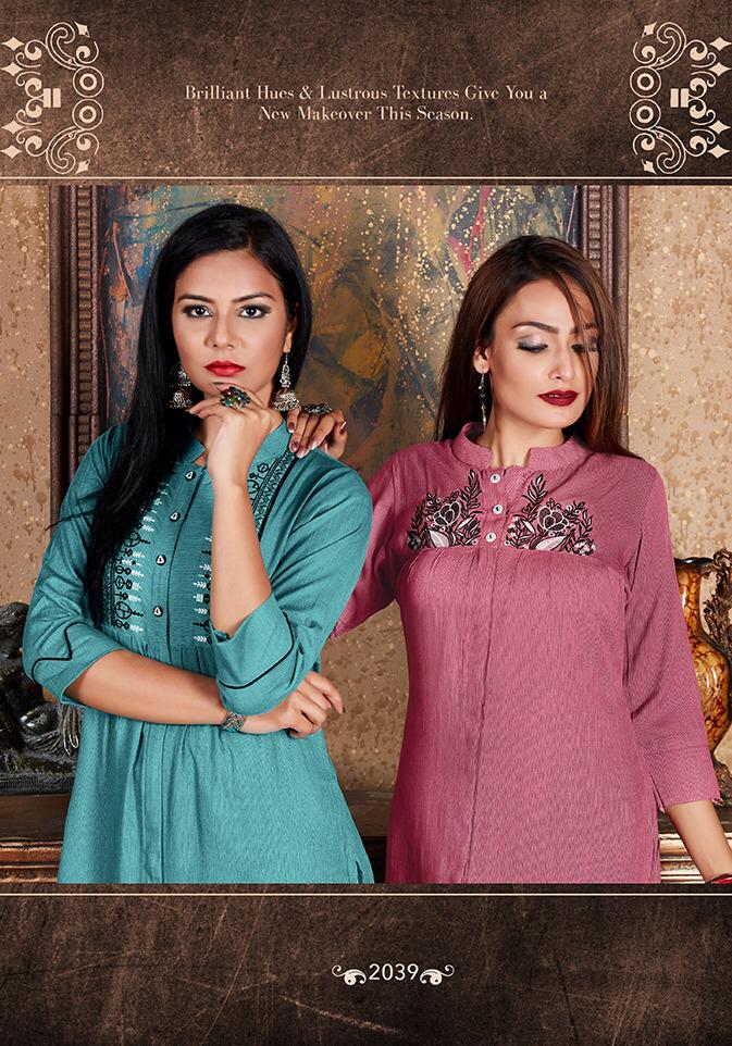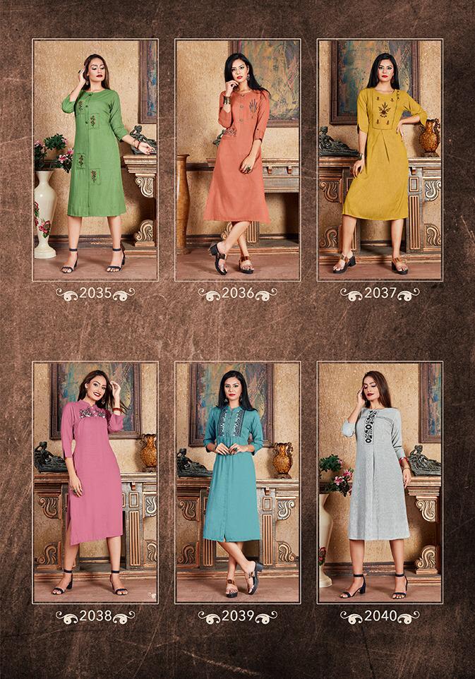 *DEHLIZ TRENDS* Catalogue name - *TRENDY * *Details* ?Fabrics - 1. kurti-- premium rayon self lining fabric + embroidery work ?Size - M(38) L(40) XL(42) XXL(44) Designs - 6? pcs ? Rate :5?4?0?only Per Pcs. Set to set . GST 5 Percent Extra. Delivery from tomorrow |