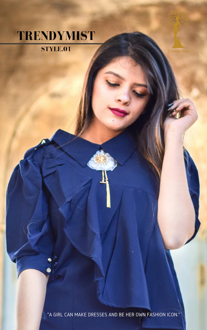 Buy Online Trendymist Style 01 By Trendy Mist Fancy Top With Broach Pin Wholesale Dealer Surat 6 Pcs of Full Catalogue at Wholesale Price. Looking for Trendymist Style 01 By Trendy Mist Fancy Top With Broach Pin Wholesale Dealer Surat Full Catalouge at Best Price? Buy Now Trendymist Style 01 By Trendy Mist Fancy Top With Broach Pin Wholesale Dealer Surat at Wholesale Rate of Rs 2850 with Total 6 Pcs from authroized dealer and supplier of Brand. Cost of Each piece is just only Rs 475 which is very low and affordable price to resale the product in your retail store ,This is Surat based Wholesale Supplier & Dealer of Brand. Click on Brand name to Know more about Brand's products.Call or Whatsapp on 9898838984 for booking or enquiry
