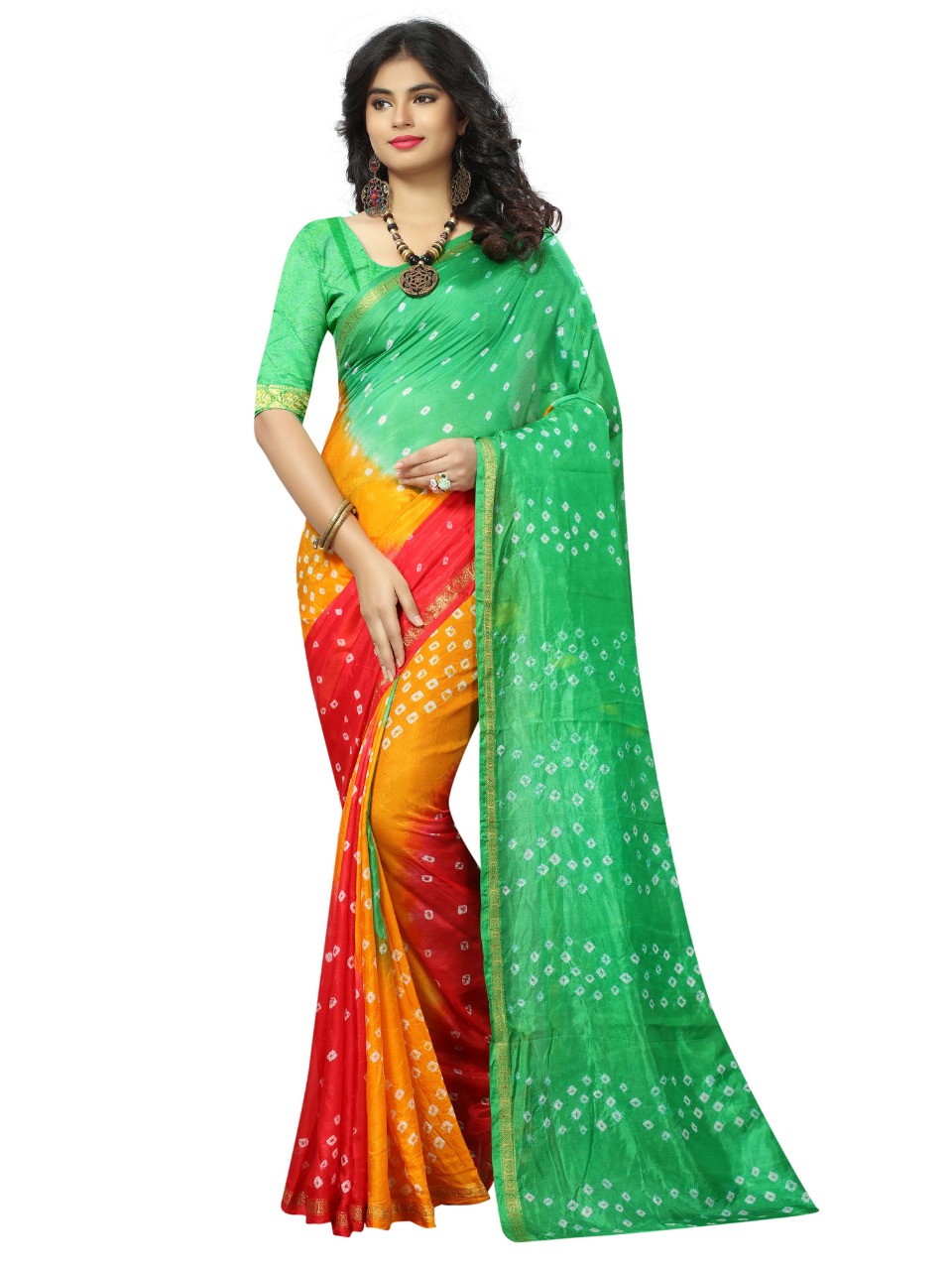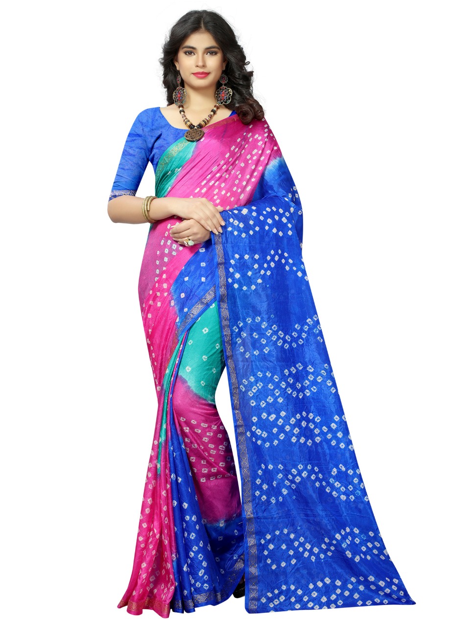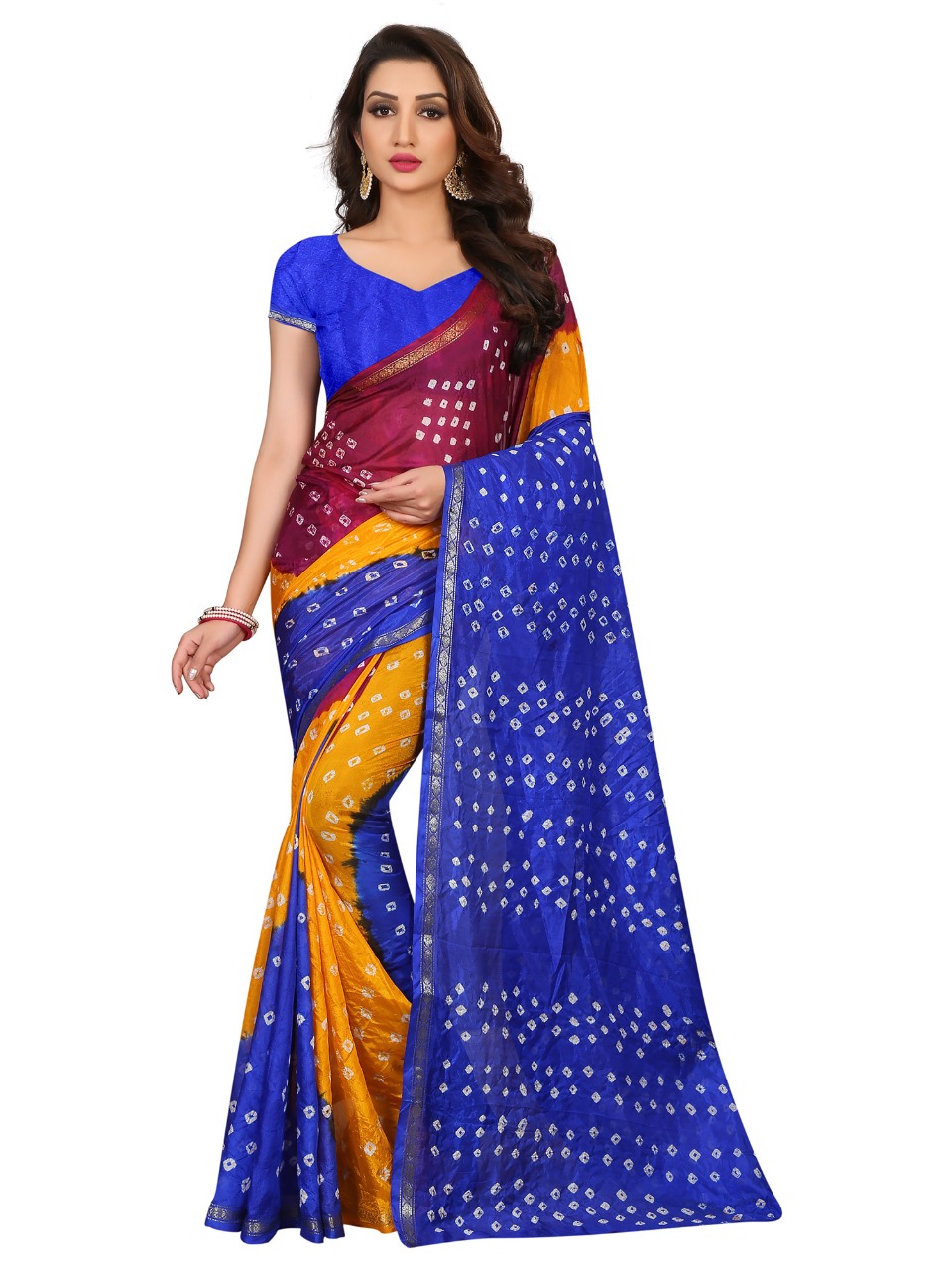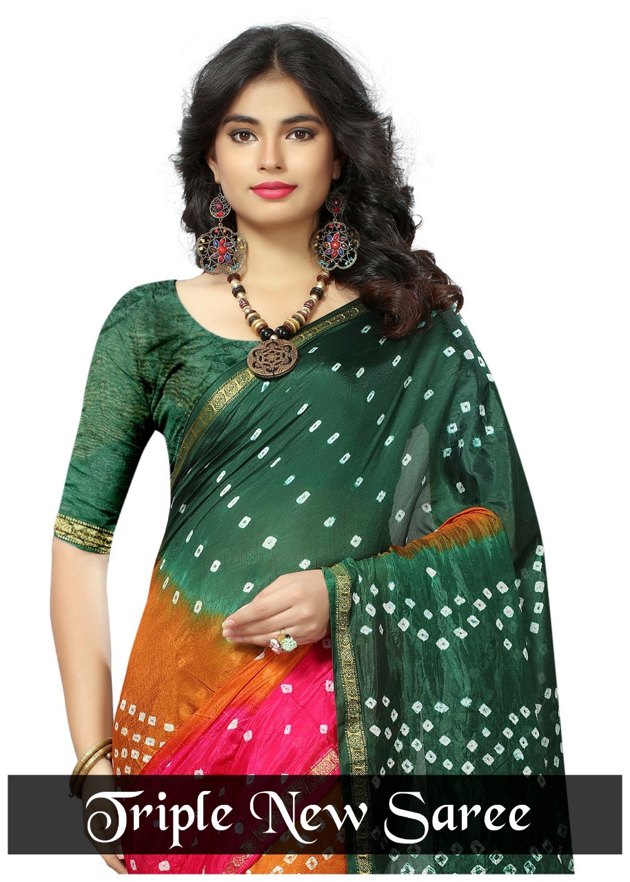 Triple new saree by nitya nx bandhni printed sarees manufacturer nd trader surat Price 600+gst |