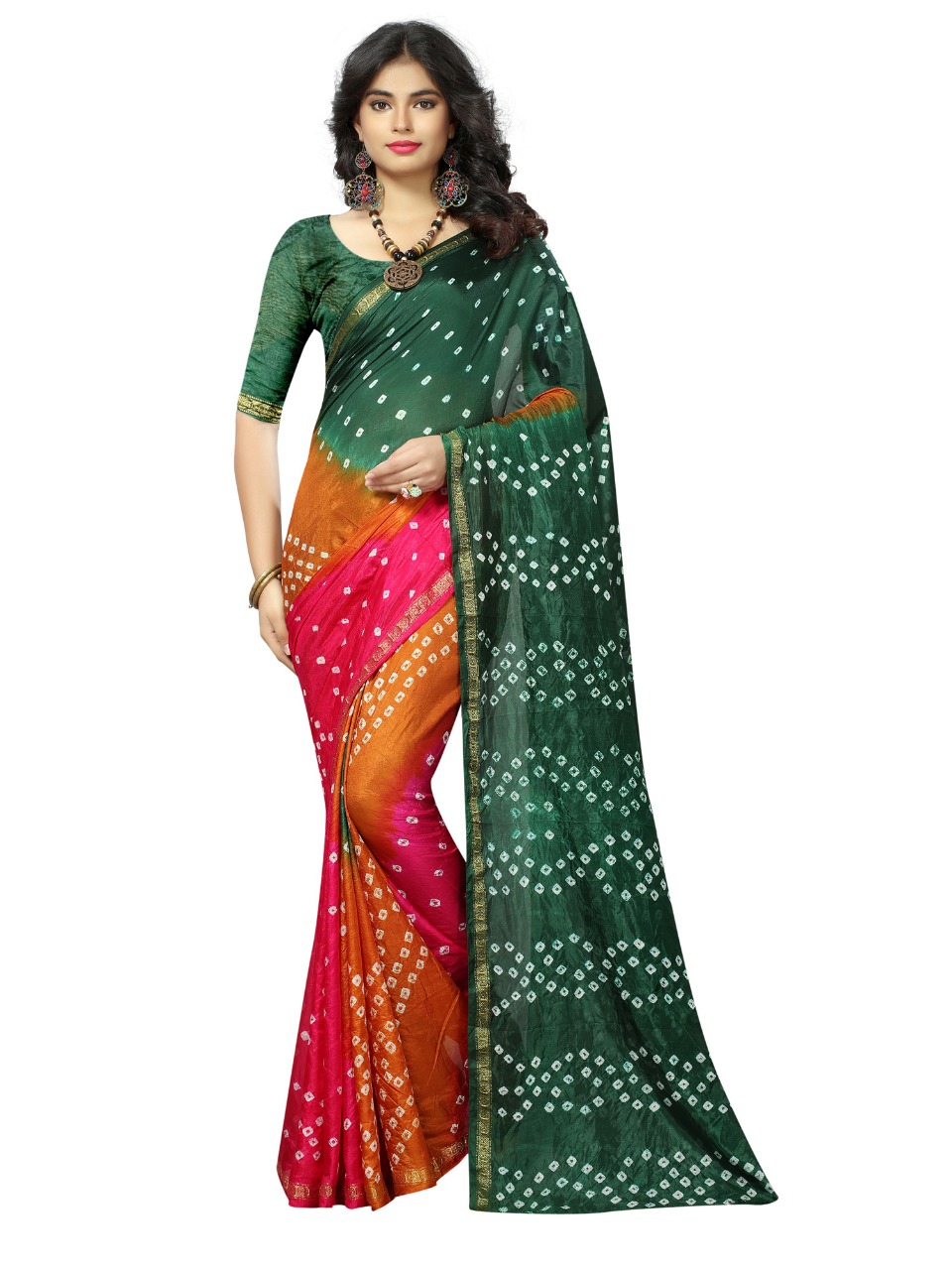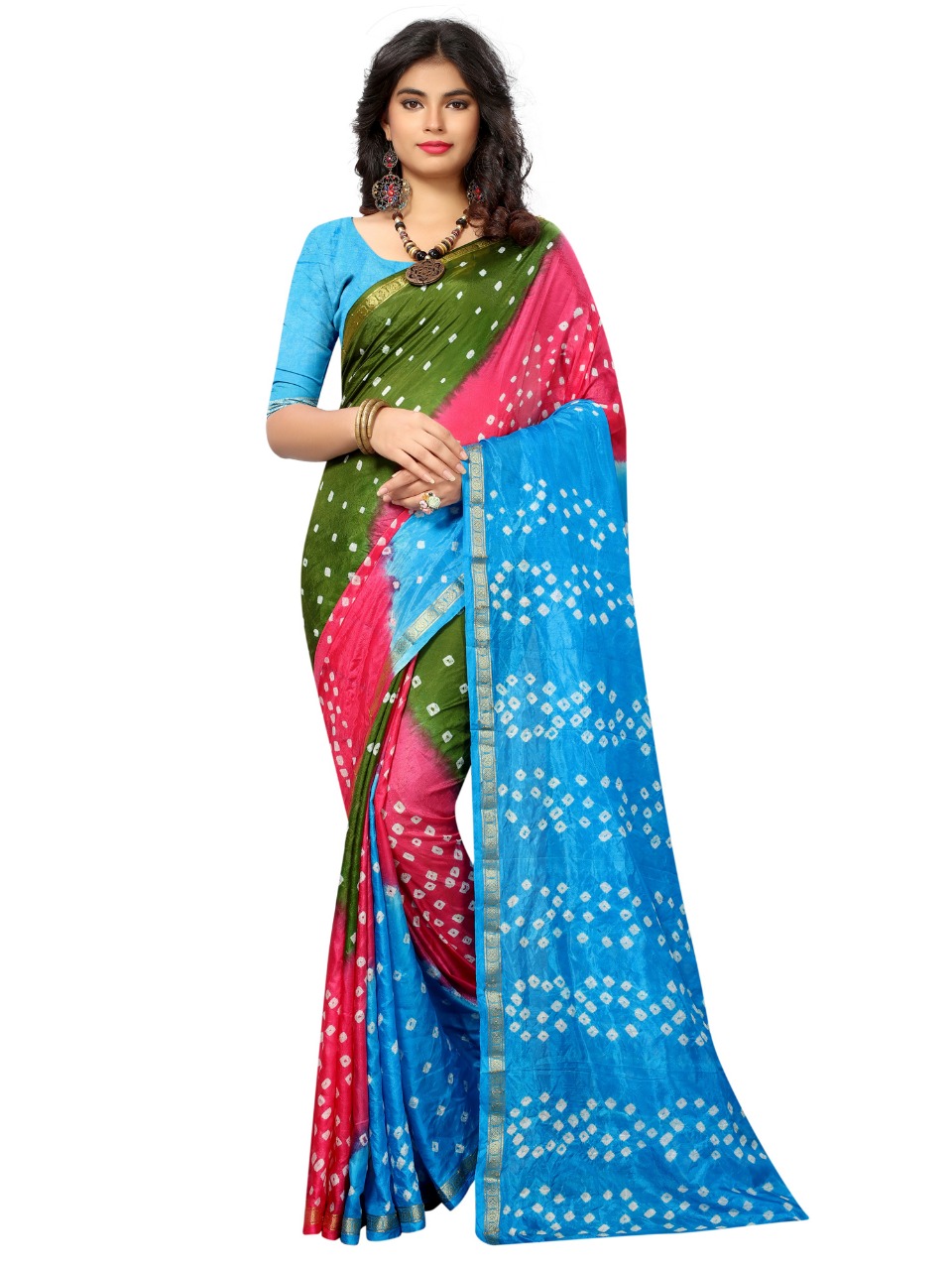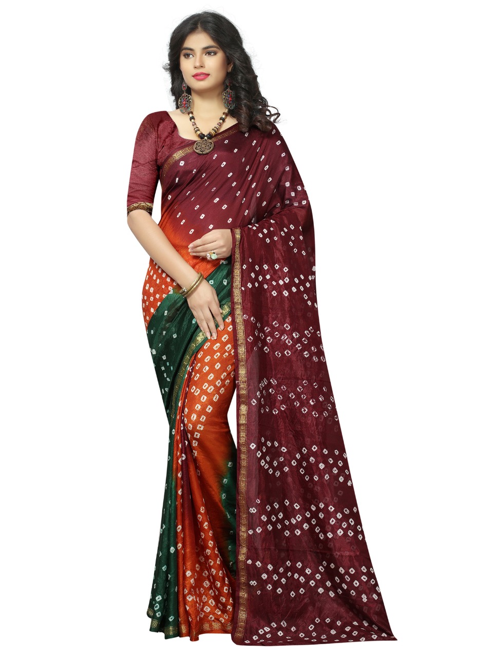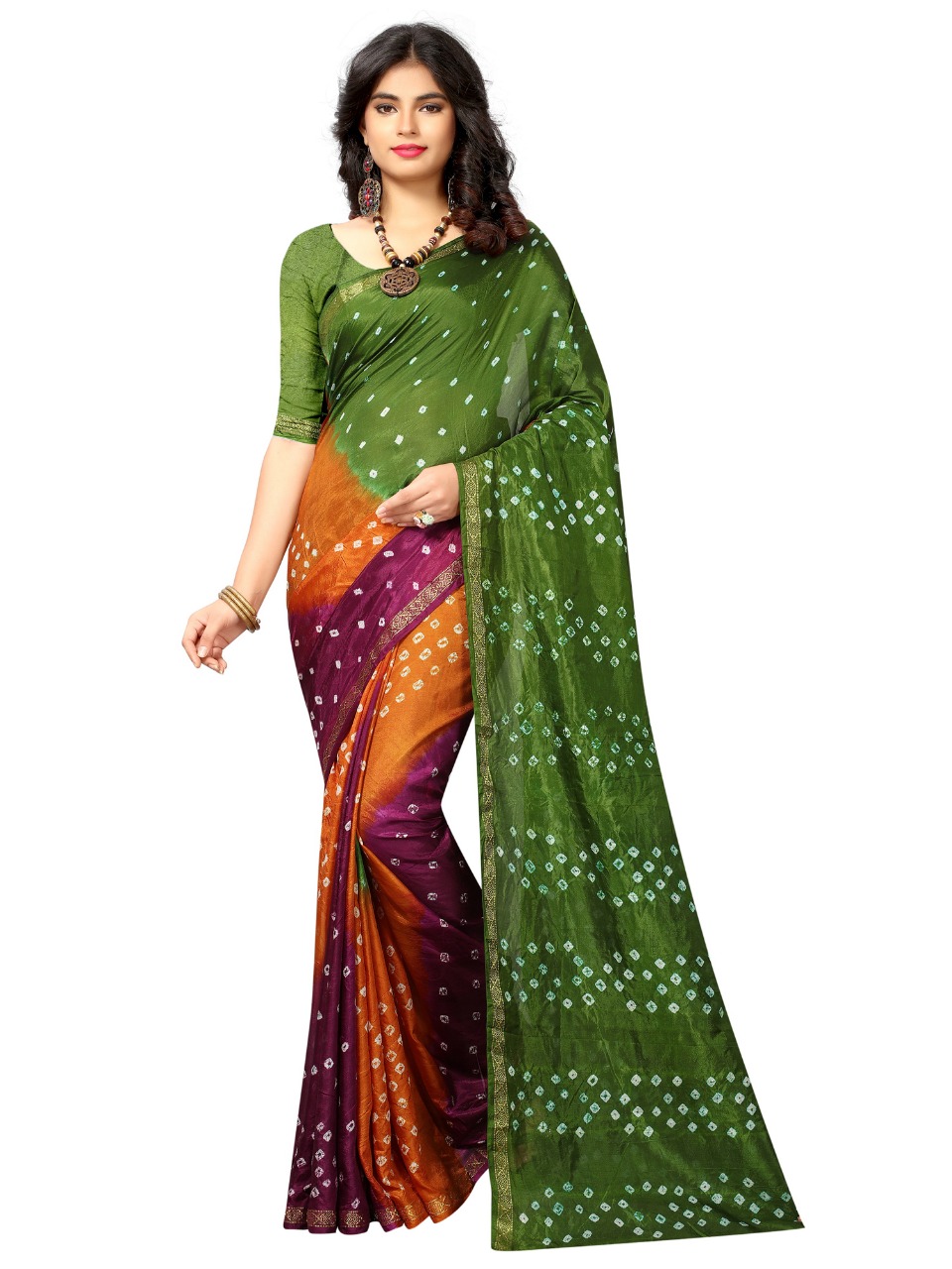 Triple new saree by nitya nx bandhni printed sarees manufacturer nd trader surat Price 600+gst |