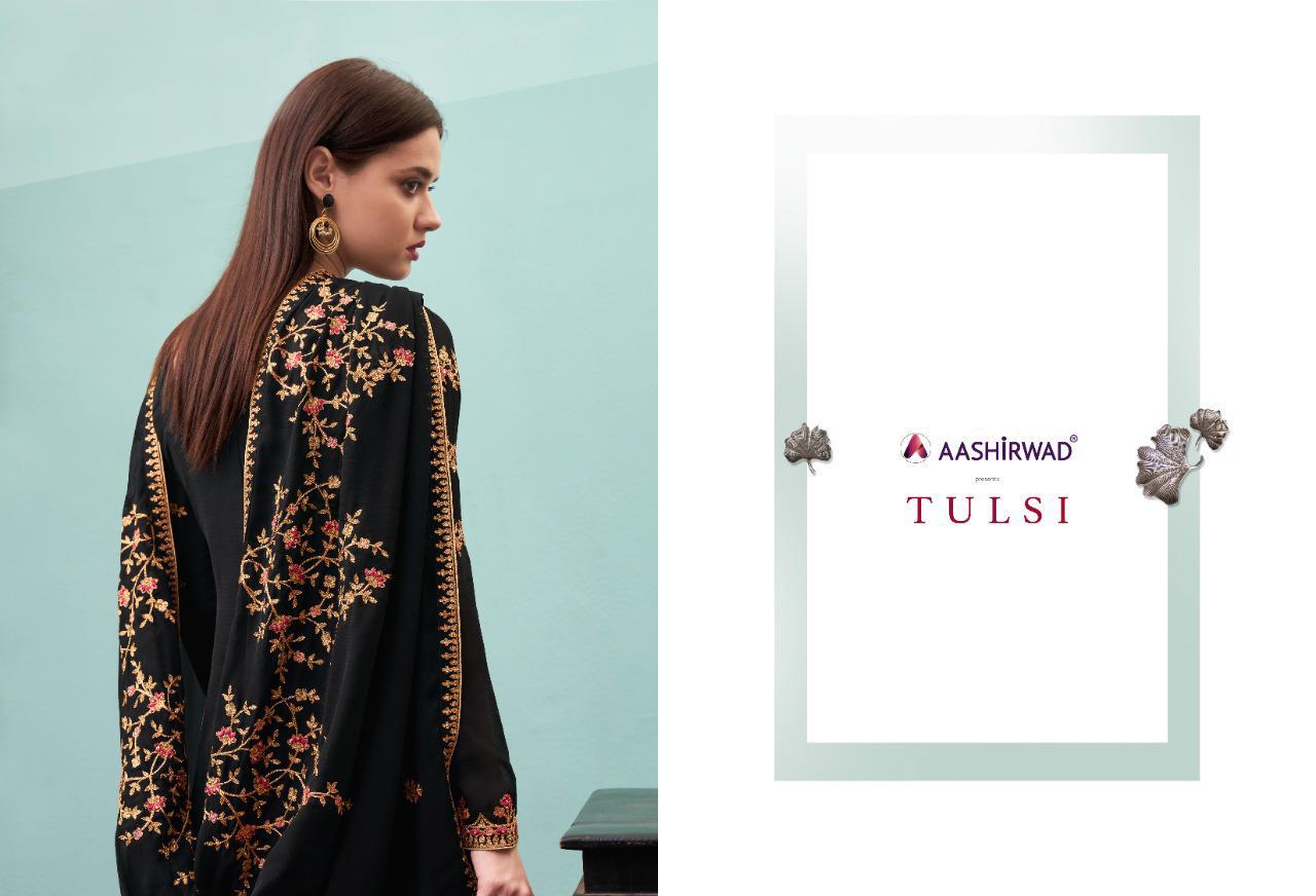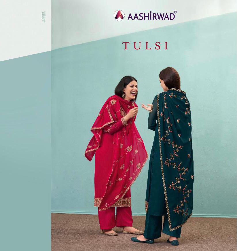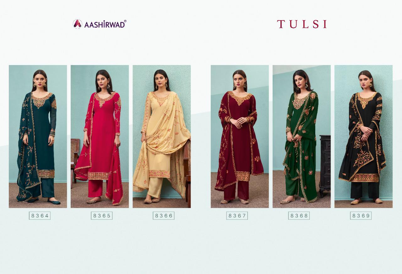 AASHIRWAD TULSI (6 pcs) Top- Real georgette Inner- Dull Santoon Bottom- Dull Santoon Duptta - Real georgette Price - 1695 Gst -5 percent extra Set to set Dispatching in 3 days !!!! |