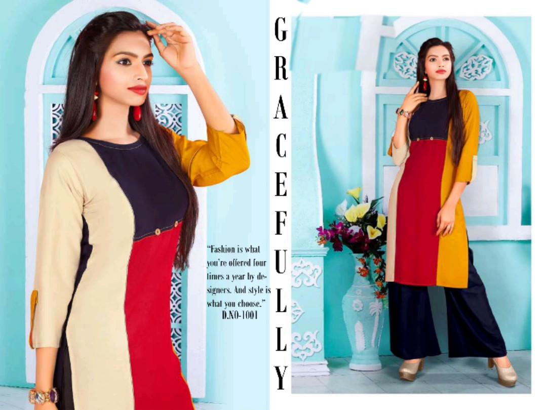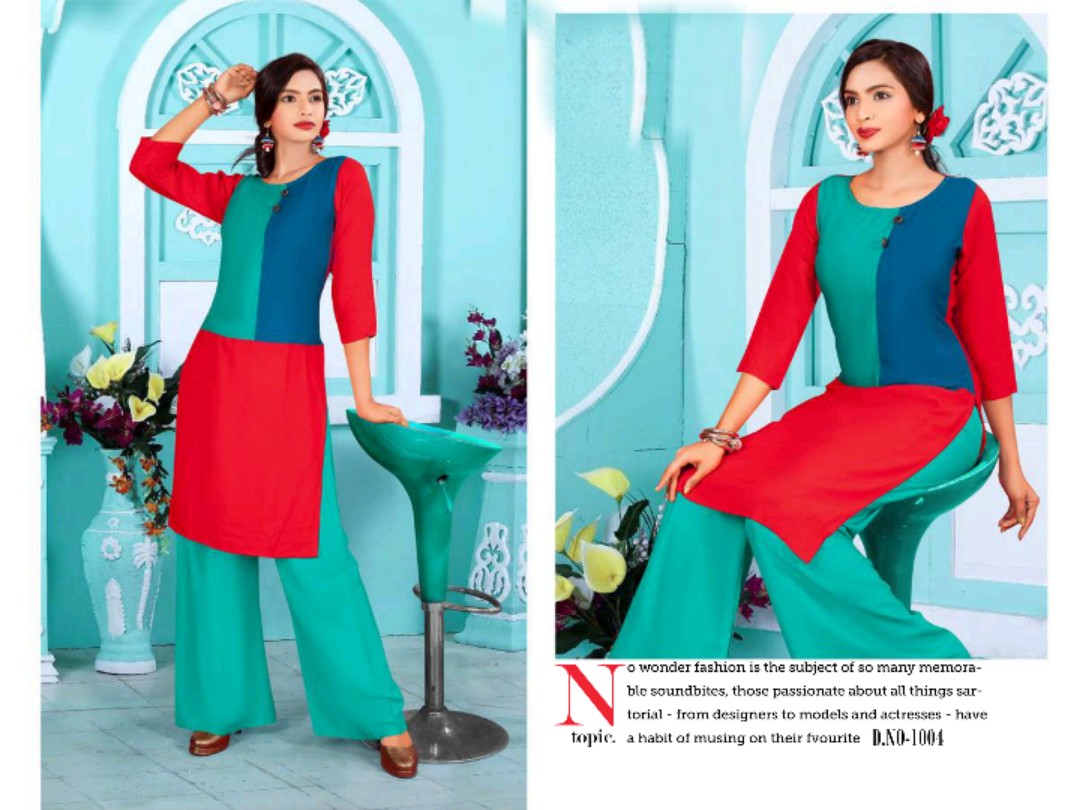 Unique 1001 Series Reyon Kurti With Plazzo Catlog Wholesale Dealer And Supplier Surat