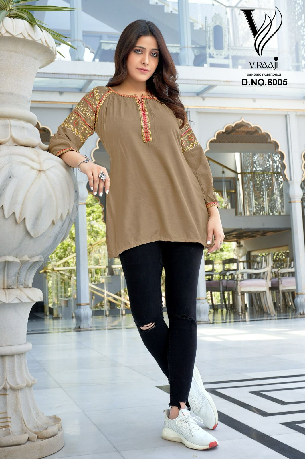 V Raaji Launched New Short Top Catalog Topsy Fancy Rayon Collection Manufacturer Surat