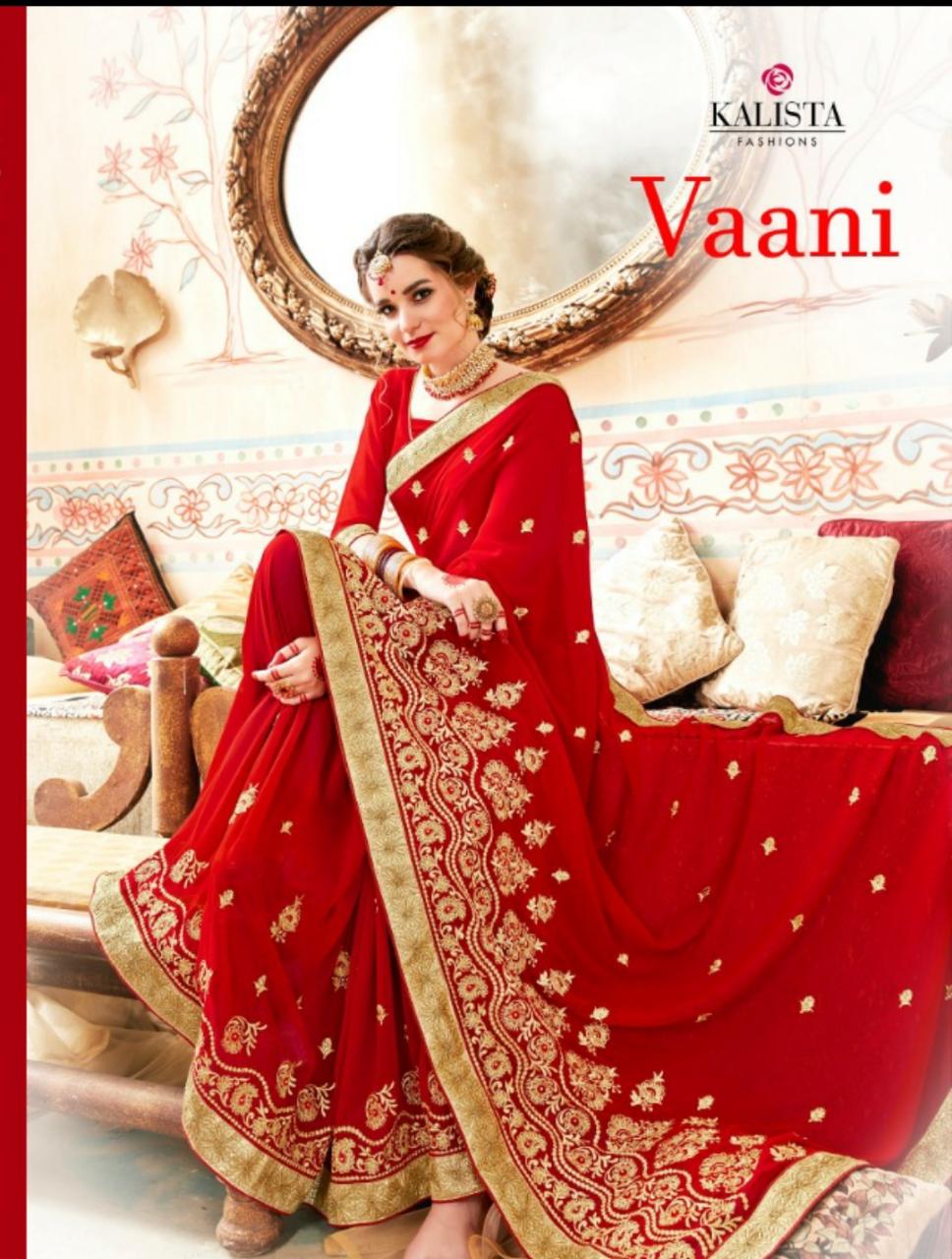 ?KALISTA INDUSTRIES LLP ? ?Catalogue Name - *VAANI-1* ? ? *Price : 825+5% GST* ? ?Fabric : *Georgette* *Availability - Full set GST 5 Percent Extra Delivery- Running |