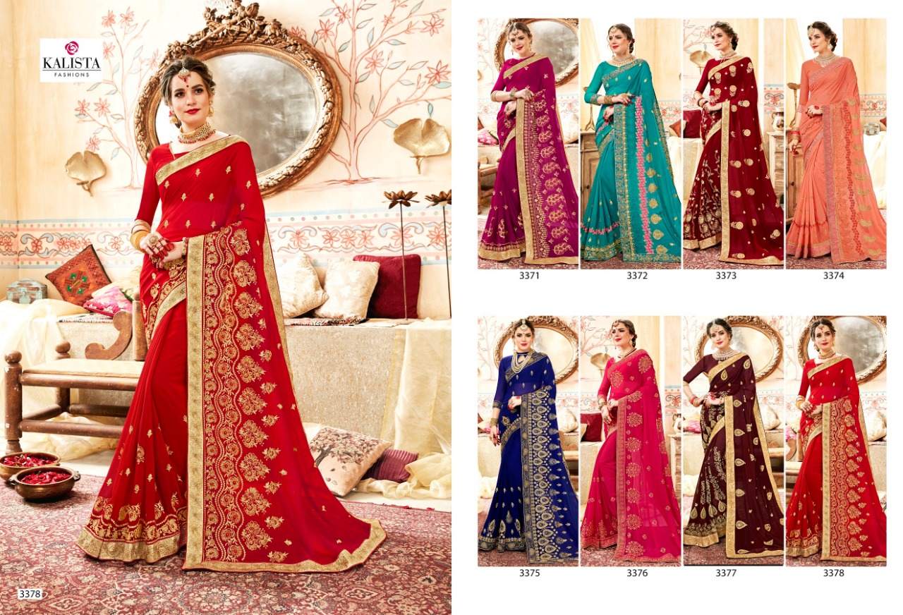 Vaani 1 By Kalista Series 3371 To 3376 Designer Party Wear Sarees Wholesale Supplier Gujarat