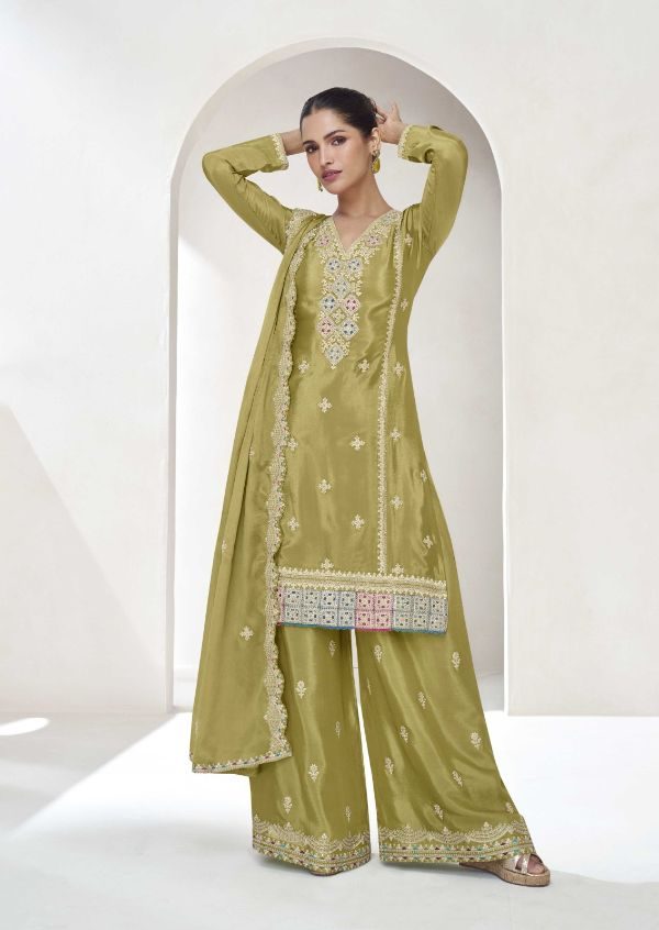 AASHIRWAD CREATION PRESENT NEW FREE SIZE STITCHED CATLOG ?VAANYA? ?FABRIC DETAILS !!!! TOP-PREMIUM CHINNON SILK. (Free size stitch ) PLAZZO-PREMIUM CHINNON SILK (free size stitch ) DUPTTA- PREMIUM Chiffon SILK RATE -2500/- GST 5% EXTRA Singles Available Book ur order Fast Ready To Ship 100+ SINGLE |