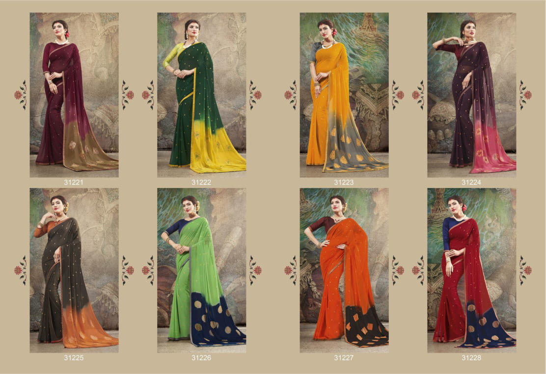 Buy Online Vaanya By Vallabhi Georgette Zari Sarees Wholesale Supplier And Dealer Surat 8 Pcs of Full Catalogue at Wholesale Price. Looking for Vaanya By Vallabhi Georgette Zari Sarees Wholesale Supplier And Dealer Surat Full Catalouge at Best Price? Buy Now Vaanya By Vallabhi Georgette Zari Sarees Wholesale Supplier And Dealer Surat at Wholesale Rate of Rs 4648 with Total 8 Pcs from authroized dealer and supplier of BRAND'S Brand. Cost of Each piece is just only Rs 581 which is very low and affordable price to resale the product in your retail store ,This is Surat based Wholesale Supplier & Dealer of BRAND'S Brand. Click on Brand name to Know more about BRAND'S Brand's products.Call or Whatsapp on 9898838984 for booking or enquiry