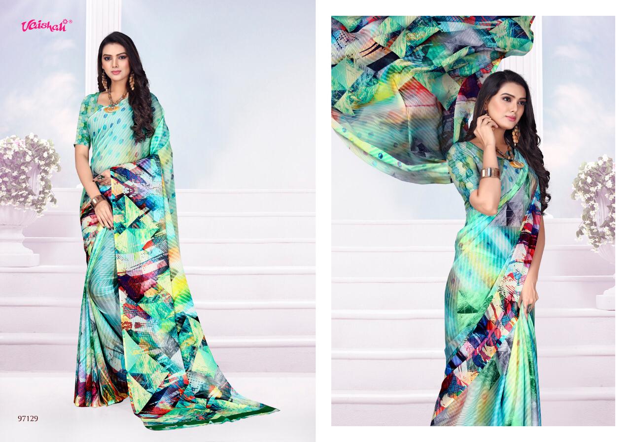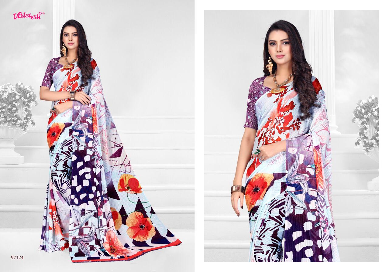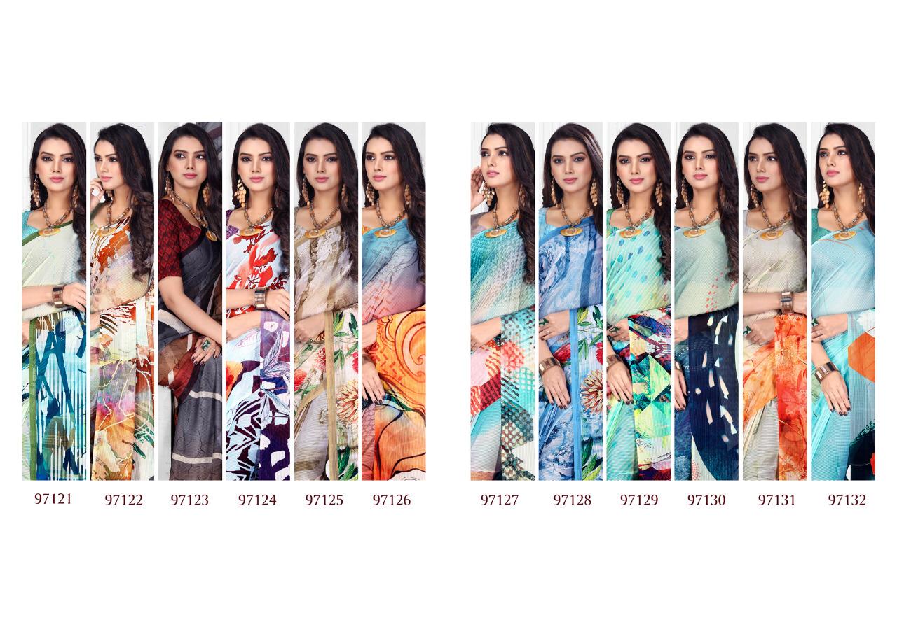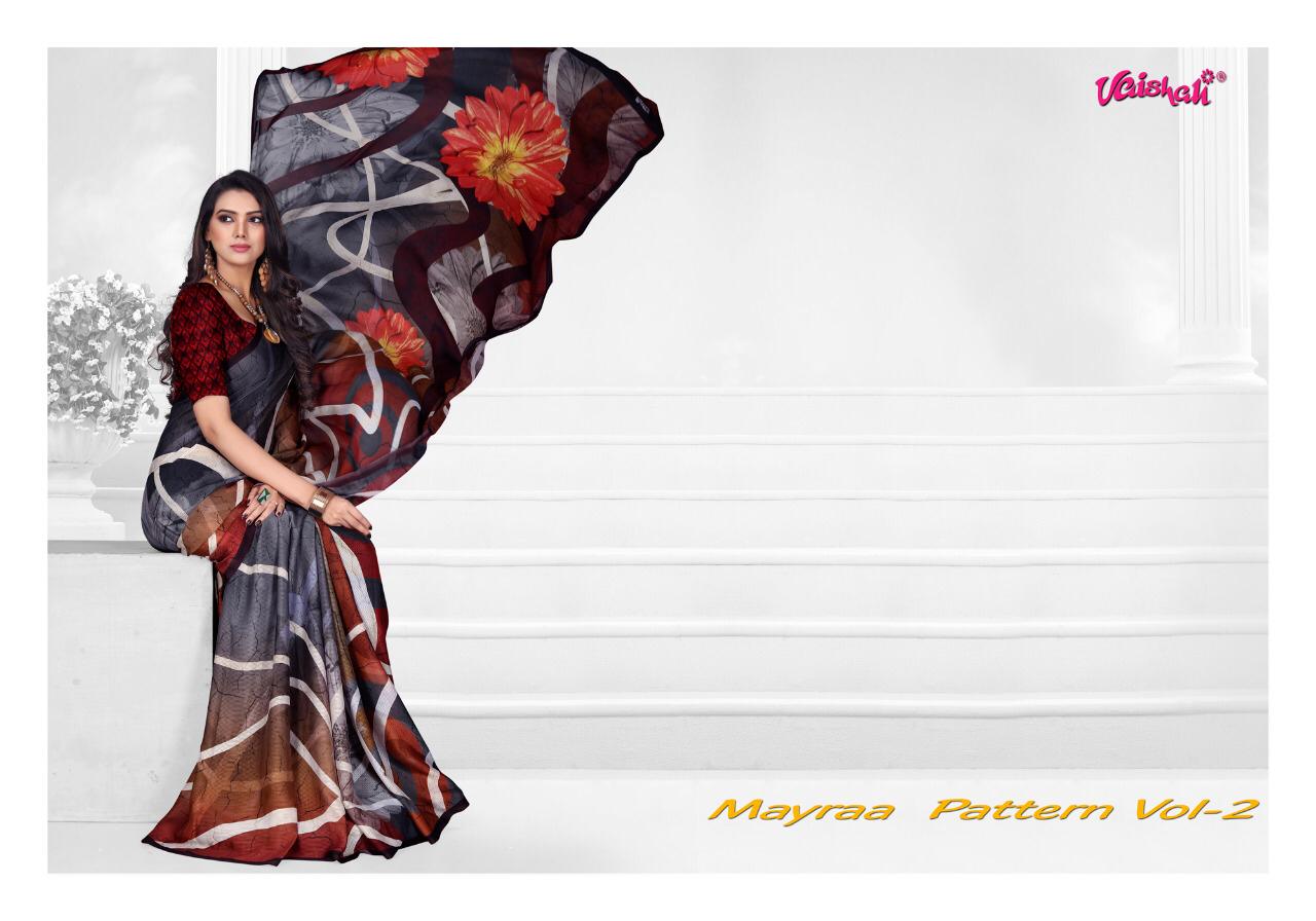 Brand - Vaishali. Type - saree Series - 97121 to 97132. Vaishali Fashions New Digital Print Gerogette Pattern Catalog Mayraa Pattern Vol - 2 Rate- 1075 per pcs . Set & loose & singel . Single extra 100 GST 5 Percent Extra. Delivery from today |