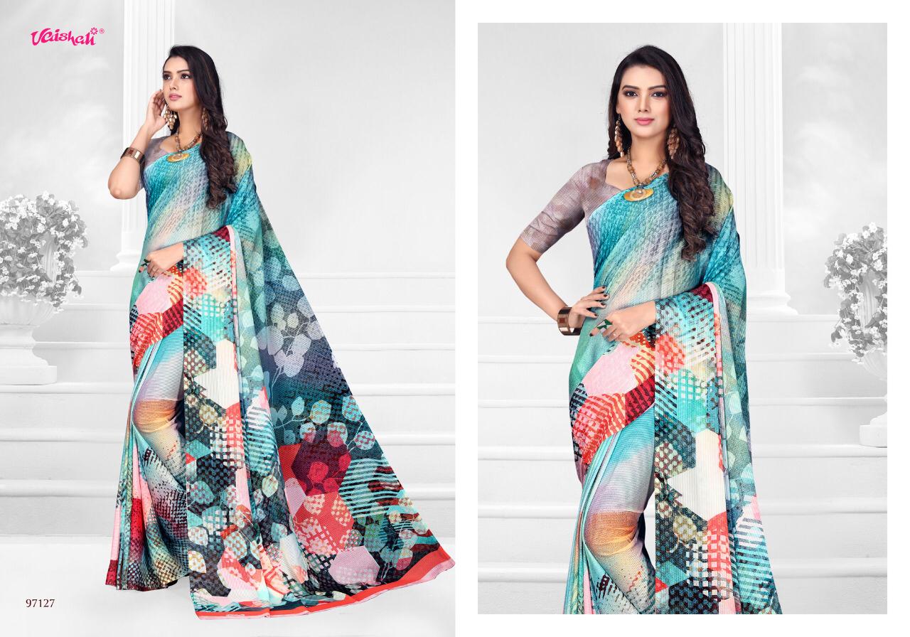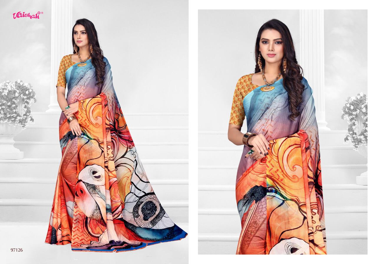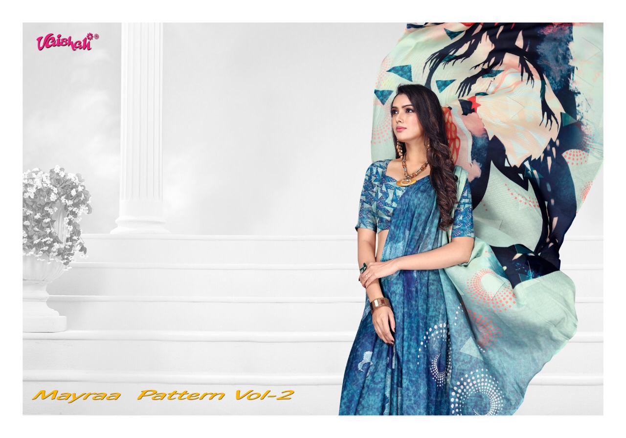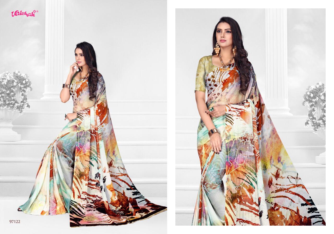 Brand - Vaishali. Type - saree Series - 97121 to 97132. Vaishali Fashions New Digital Print Gerogette Pattern Catalog Mayraa Pattern Vol - 2 Rate- 1075 per pcs . Set & loose & singel . Single extra 100 GST 5 Percent Extra. Delivery from today |