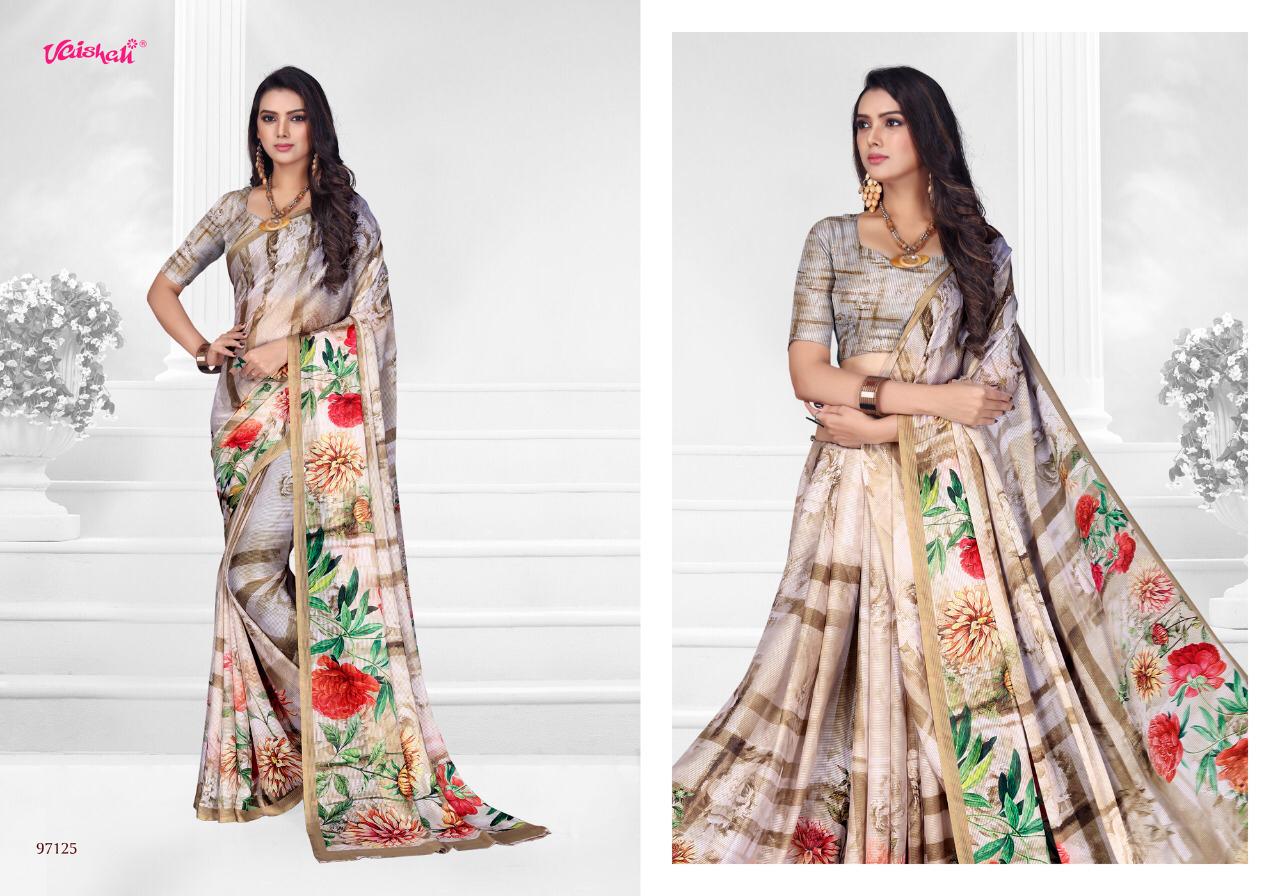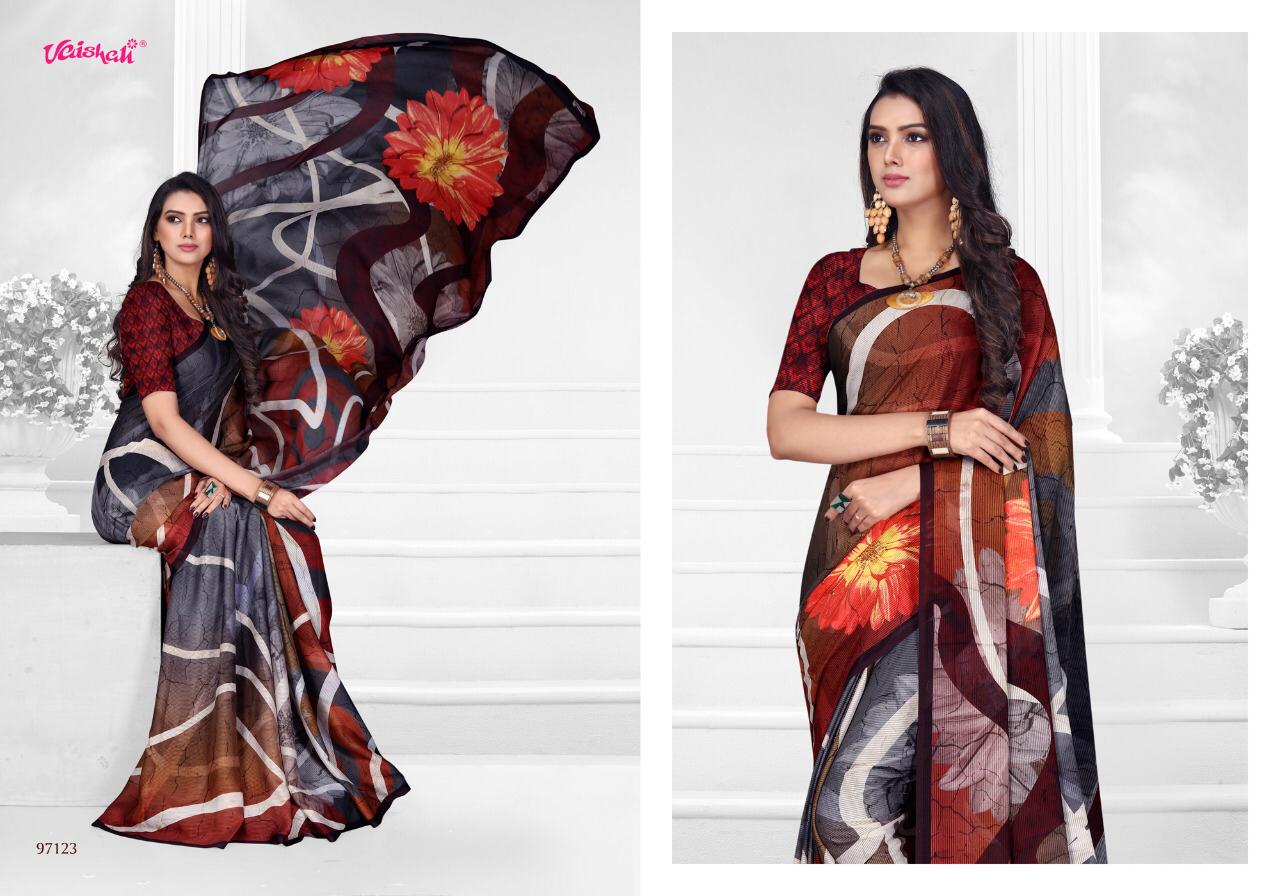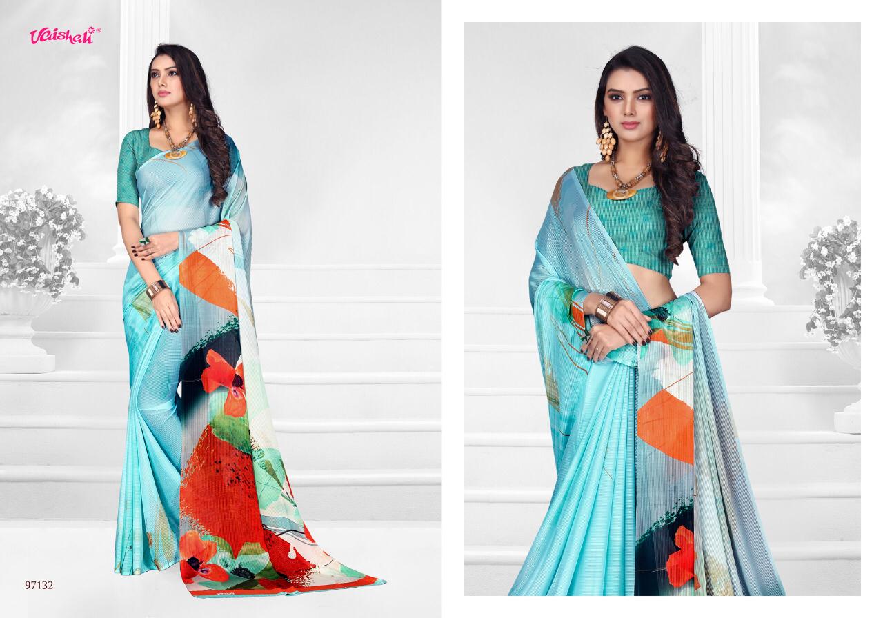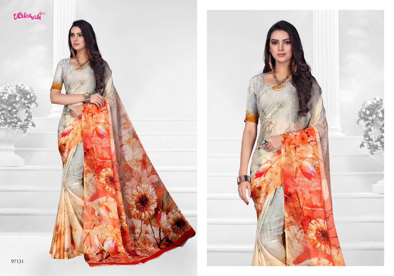 Brand - Vaishali. Type - saree Series - 97121 to 97132. Vaishali Fashions New Digital Print Gerogette Pattern Catalog Mayraa Pattern Vol - 2 Rate- 1075 per pcs . Set & loose & singel . Single extra 100 GST 5 Percent Extra. Delivery from today |