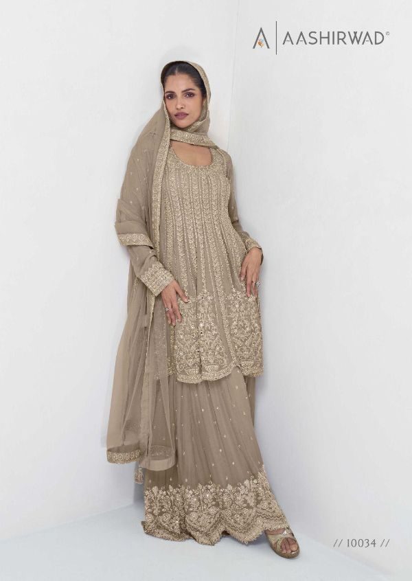 AASHIRWAD CREATION PRESENT NEW FREE SIZE STITCH COLLECTION (XL SIZE ) ?VARTIKA ? ?FABRIC DETAILS !!!! TOP-REAL GEORGETTE (free size stitch FRONT N BACK HEAVY EMBROIDERY ) PLAZZO - REAL GEORGETTE (free size stitched) DUPTTA - PREMIUM NET Price - 2999 Gst - 12 percent extra Dispatching in 3 days !!! SINGLE AVAILABLE 100+ SINGLE |