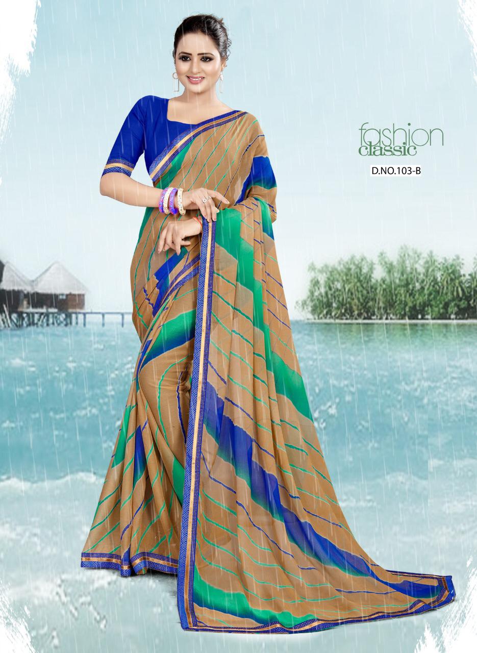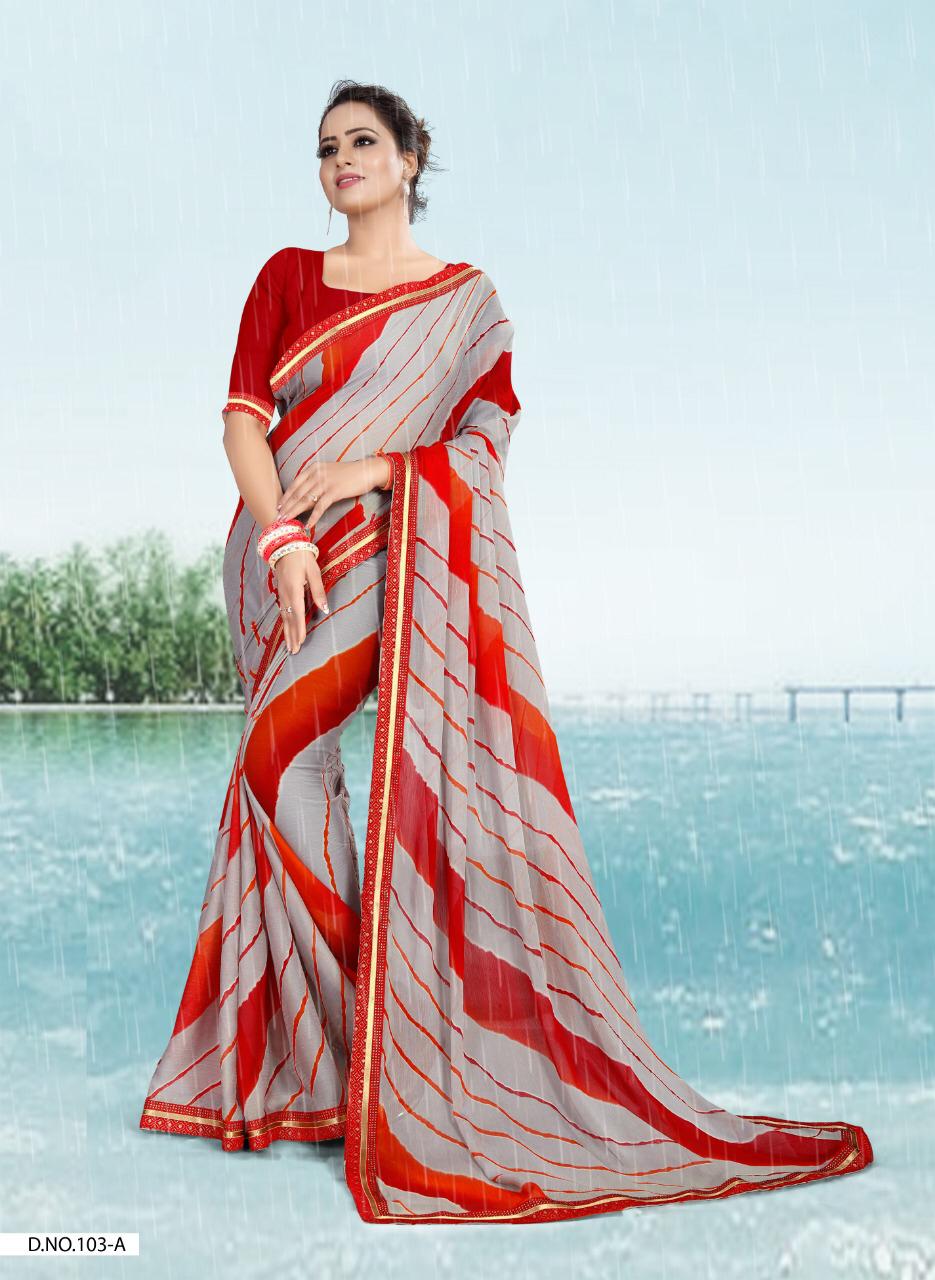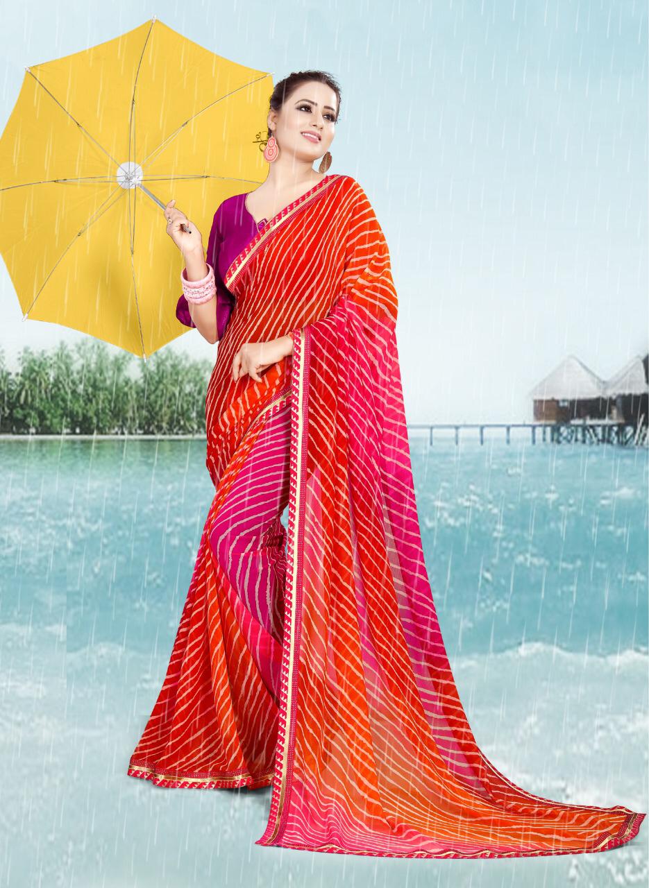 Vatika Velly By Liril Fashion Lehariya New Fabrics With Fancy Lace Saree With Blouse