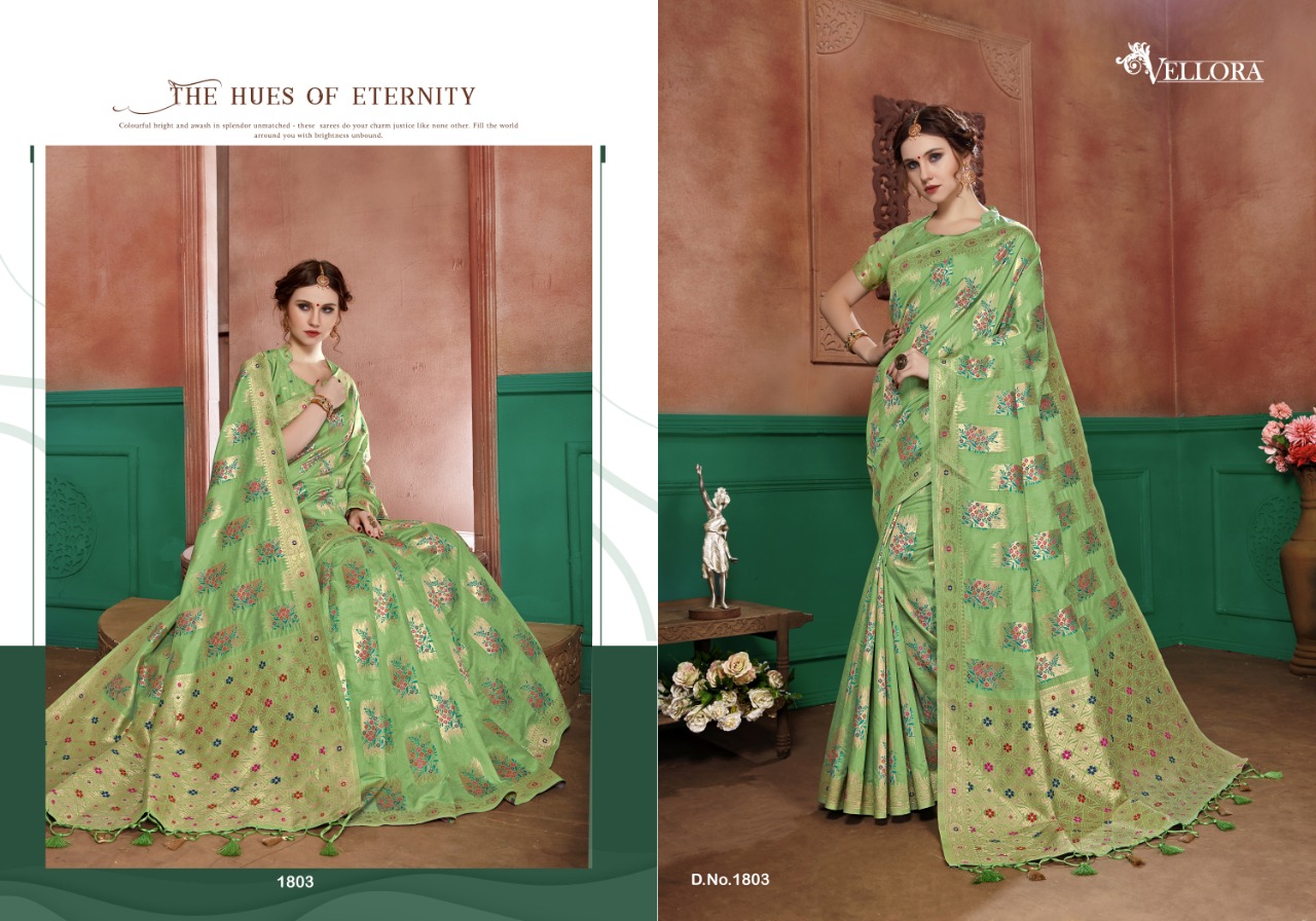 ||OM SHREE GANESHAY NAMAH|| Kesari Exports ?We have great pleasure to launch our new catalog Vellora Saree Vol -8?? Catlog Name- Vellora Saree Vol-8 Rate : 1495 Single extra 100 Fabric : Banarasi cotton Silk Singles and Set to Set Both Available Same Day Delivery Hurry up?? Book your orders now. |