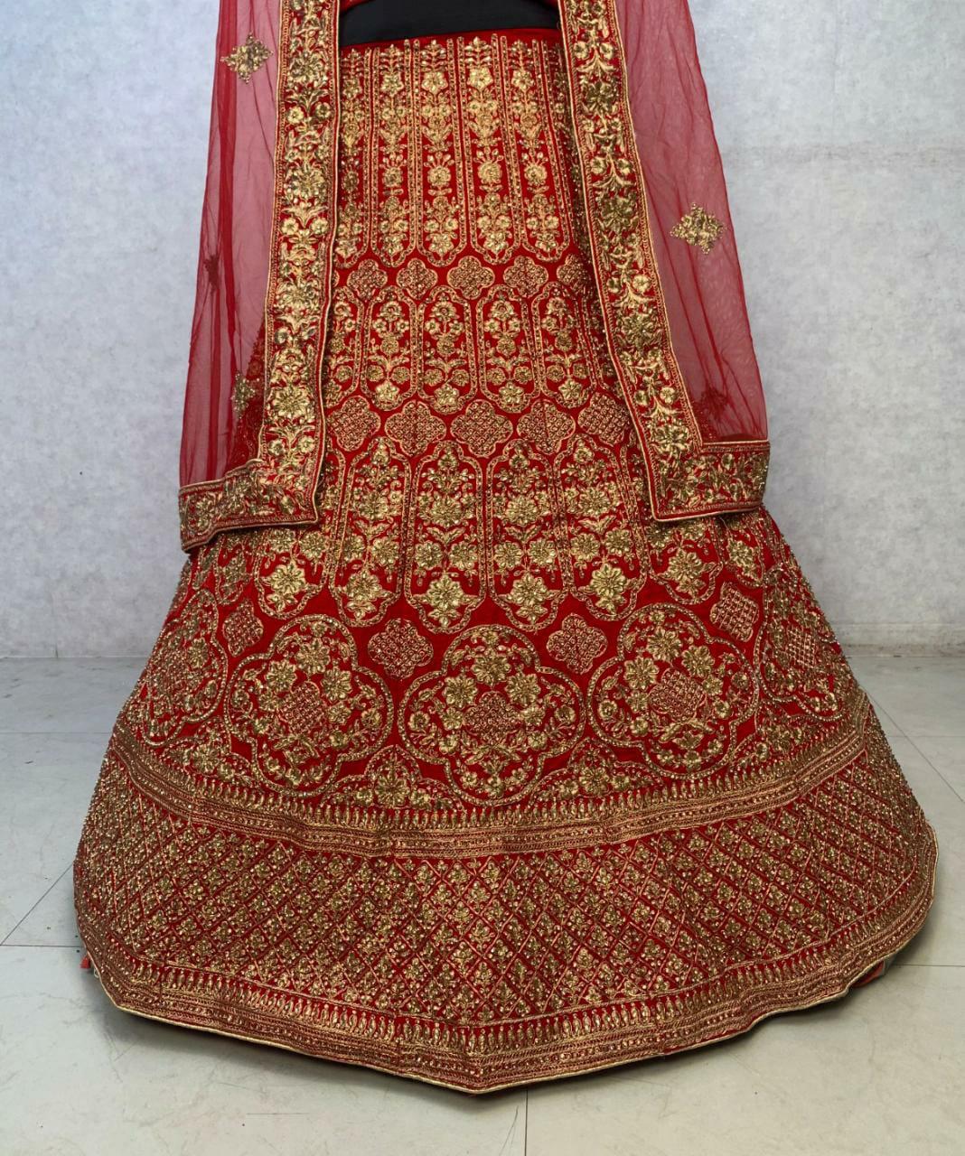 Lehenga Fabric - Silk Lehenga Color - Red Lehenga Length - 43 Inches Lehenga Waist Size - 43 Inches Lehenga Flair - 3.00 Mtr Lehenga Work - Embroidery Work Choli Fabric - Silk Choli Material Size - 1.00 MTR Choli Work - Embroidery Work Dupatta Fabric - Net Dupatta Color - Red Dupatta Size - 2.60 MTR Product- Velvet Lehenga Product Name - D NO -*4564 Stitching Type - Semi-Stitched Package Details - Lehenga, Choli, Dupatta, Inner *Rate - 7350 per Pcs * GST 12 Percent Extra. Singel PCÂ?s Avila |