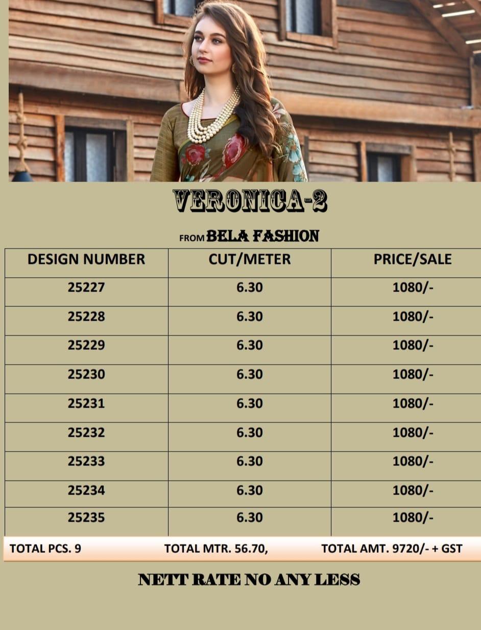 Brand - Bela . Type - saeee. Catlog Name - VERONICA -2. Set to set. GST 5 Percent Extra. Delivery- Today |