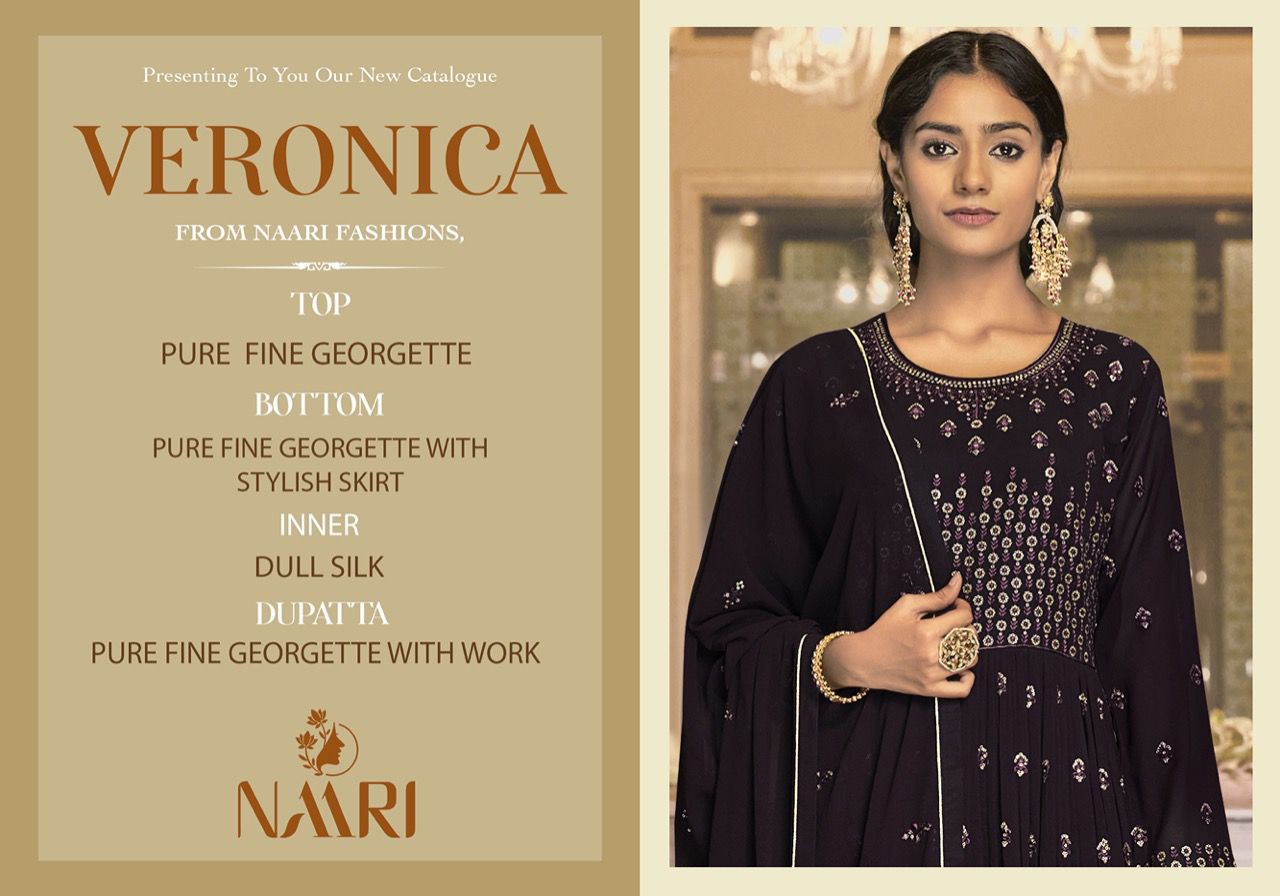 Buy Online Veronica By Naari Nyra Cut Suits 4 Pcs of Full Catalogue at Wholesale Price. Looking for Veronica By Naari Nyra Cut Suits Full Catalouge at Best Price? Buy Now Veronica By Naari Nyra Cut Suits at Wholesale Rate of Rs 7180 with Total 4 Pcs from authroized dealer and supplier of Nari Fashion Brand. Cost of Each piece is just only Rs 1795 which is very low and affordable price to resale the product in your retail store ,This is Surat based Wholesale Supplier & Dealer of Nari Fashion Brand. Click on Brand name to Know more about Nari Fashion Brand's products.Call or Whatsapp on 9898838984 for booking or enquiry
