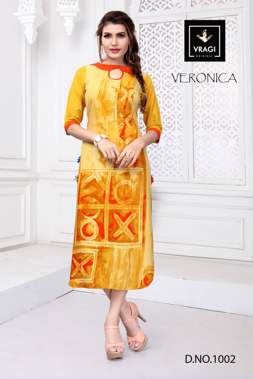 Buy Online Veronica By Vragi 1001 Series Fancy Heavy Reyon Kirti Catlog Wholesale Dealer Surat 8 Pcs of Full Catalogue at Wholesale Price. Looking for Veronica By Vragi 1001 Series Fancy Heavy Reyon Kirti Catlog Wholesale Dealer Surat Full Catalouge at Best Price? Buy Now Veronica By Vragi 1001 Series Fancy Heavy Reyon Kirti Catlog Wholesale Dealer Surat at Wholesale Rate of Rs 3240 with Total 8 Pcs from authroized dealer and supplier of Brand. Cost of Each piece is just only Rs 405 which is very low and affordable price to resale the product in your retail store ,This is Surat based Wholesale Supplier & Dealer of Brand. Click on Brand name to Know more about Brand's products.Call or Whatsapp on 9898838984 for booking or enquiry