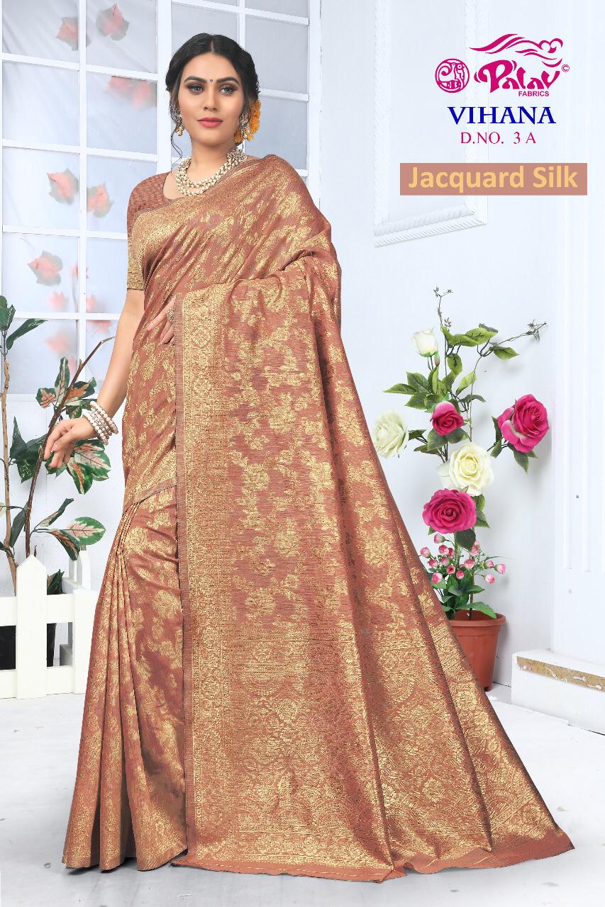 *VIHANA SERIES* by Palav 4 DESIGNS, 4 COLORS each ALL SILK JACQUARD Rate Rs. 845 per pcs . Single extra 100 * set & loose & Singel * GST 5 Percent Extra |