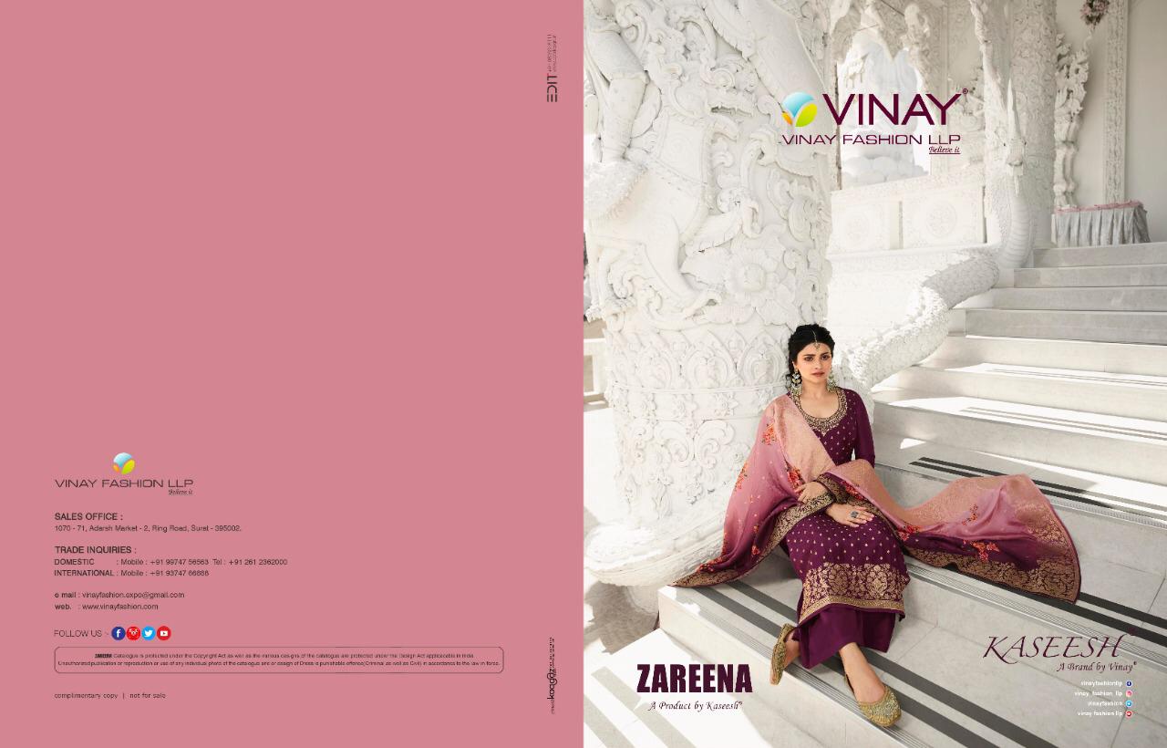 Buy Online Vinay Kasheesh Zareena 12751 To 12758 Designer Party Wear Suits Wholesale Supplier Gujarat 8 Pcs of Full Catalogue at Wholesale Price. Looking for Vinay Kasheesh Zareena 12751 To 12758 Designer Party Wear Suits Wholesale Supplier Gujarat Full Catalouge at Best Price? Buy Now Vinay Kasheesh Zareena 12751 To 12758 Designer Party Wear Suits Wholesale Supplier Gujarat at Wholesale Rate of Rs 14400 with Total 8 Pcs from authroized dealer and supplier of VINAY Brand. Cost of Each piece is just only Rs 1800 which is very low and affordable price to resale the product in your retail store ,This is Surat based Wholesale Supplier & Dealer of VINAY Brand. Click on Brand name to Know more about VINAY Brand's products.Call or Whatsapp on 9898838984 for booking or enquiry