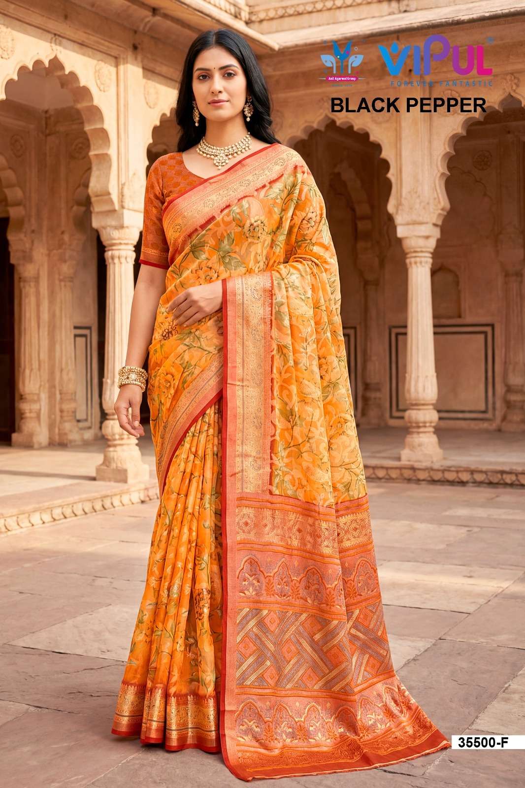 Buy Online VIPUL Brasso SAREE collection manufacturers surat 30 Pcs of Full Catalogue at Wholesale Price. Looking for VIPUL Brasso SAREE collection manufacturers surat Full Catalouge at Best Price? Buy Now VIPUL Brasso SAREE collection manufacturers surat at Wholesale Rate of Rs 25110 with Total 30 Pcs from authroized dealer and supplier of BRAND'S Brand. Cost of Each piece is just only Rs 837 which is very low and affordable price to resale the product in your retail store ,This is Surat based Wholesale Supplier & Dealer of BRAND'S Brand. Click on Brand name to Know more about BRAND'S Brand's products.Call or Whatsapp on 9898838984 for booking or enquiry