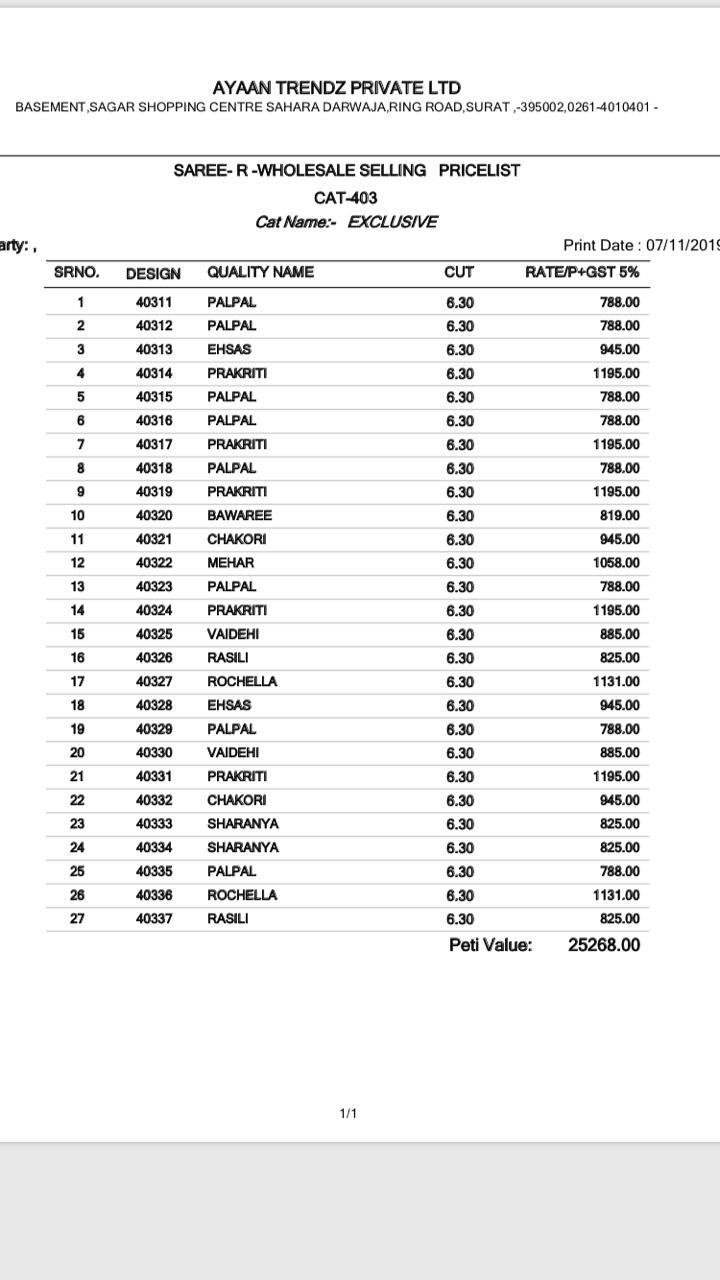Buy Online Vipul Cat 403 Fancy Sarees Wholesale Supplier And Trader Surat 27 Pcs of Full Catalogue at Wholesale Price. Looking for Vipul Cat 403 Fancy Sarees Wholesale Supplier And Trader Surat Full Catalouge at Best Price? Buy Now Vipul Cat 403 Fancy Sarees Wholesale Supplier And Trader Surat at Wholesale Rate of Rs 25272 with Total 27 Pcs from authroized dealer and supplier of VIPUL Brand. Cost of Each piece is just only Rs 936 which is very low and affordable price to resale the product in your retail store ,This is Surat based Wholesale Supplier & Dealer of VIPUL Brand. Click on Brand name to Know more about VIPUL Brand's products.Call or Whatsapp on 9898838984 for booking or enquiry