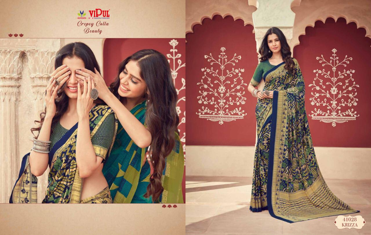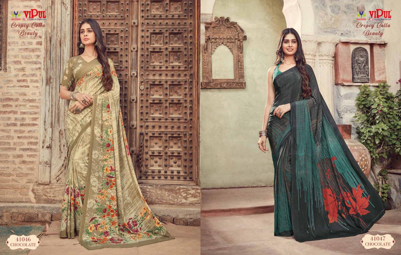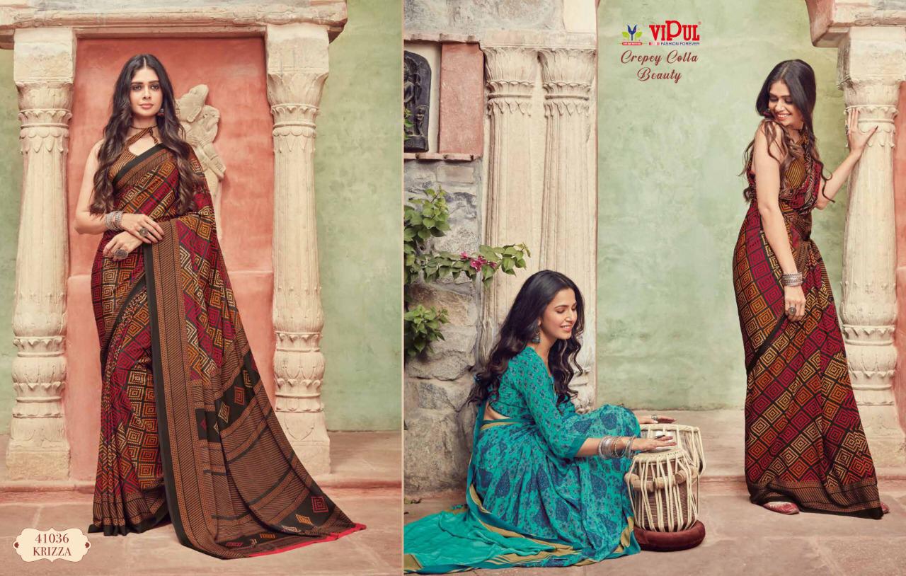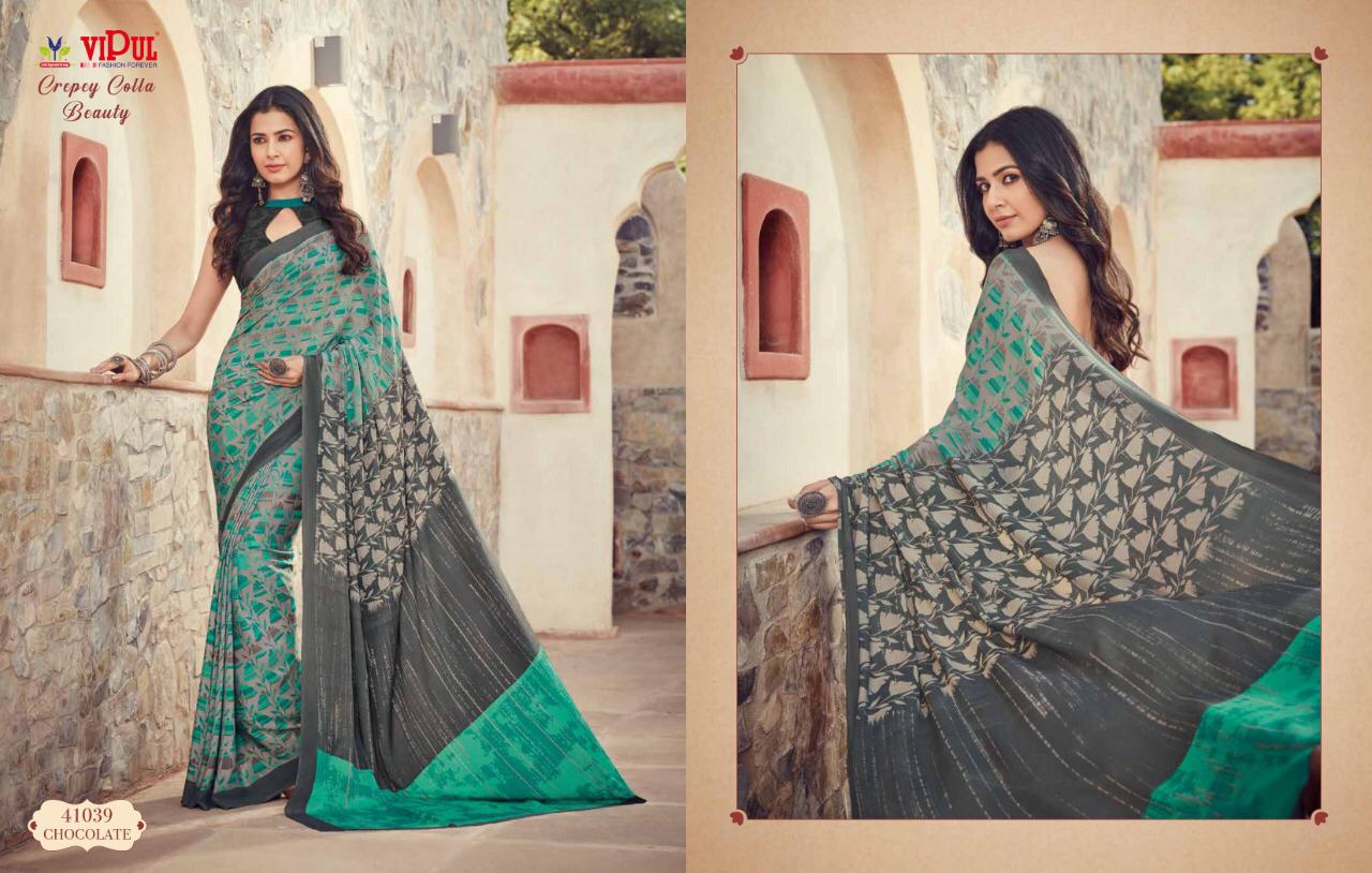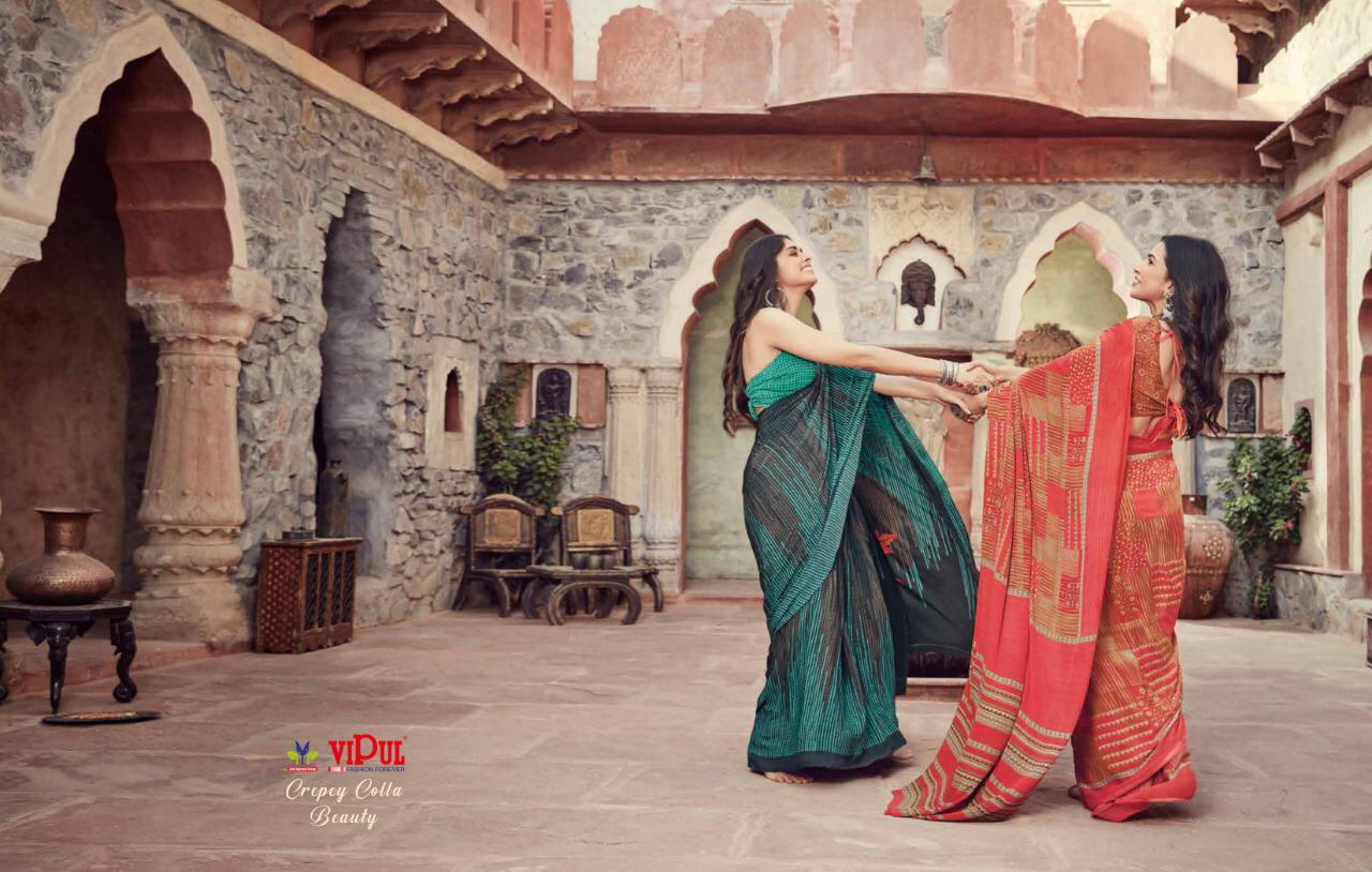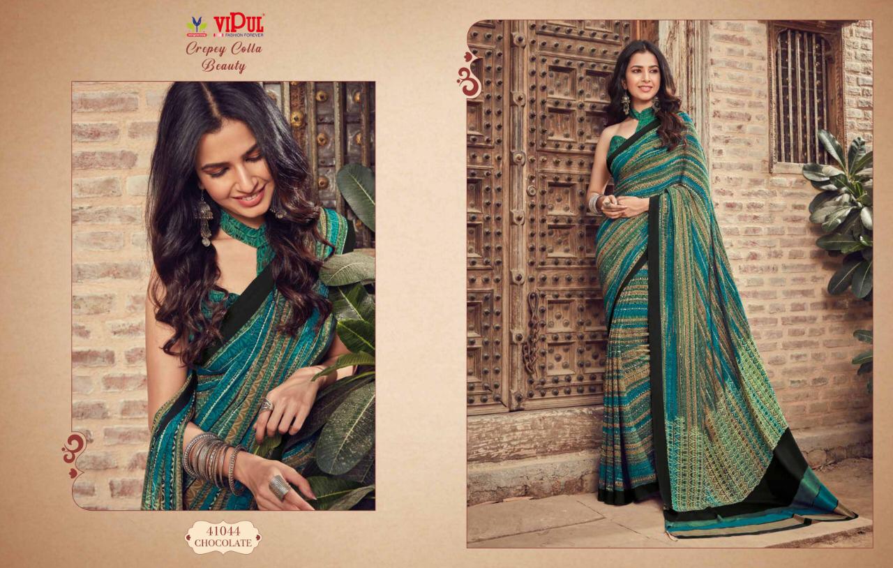 Vipul Cat 410 Crepey Colla Beauty Designer Sarees Wholesale Supplier And Dealer Surat
