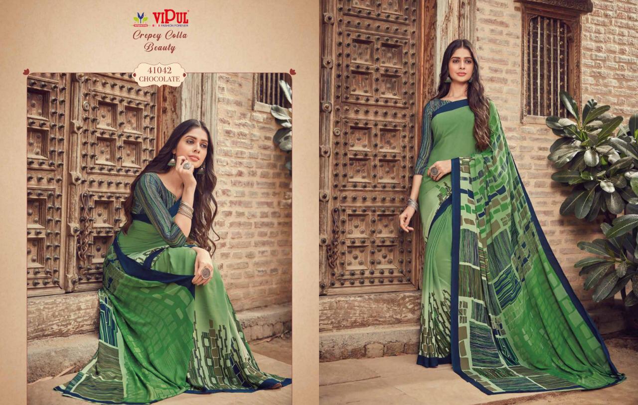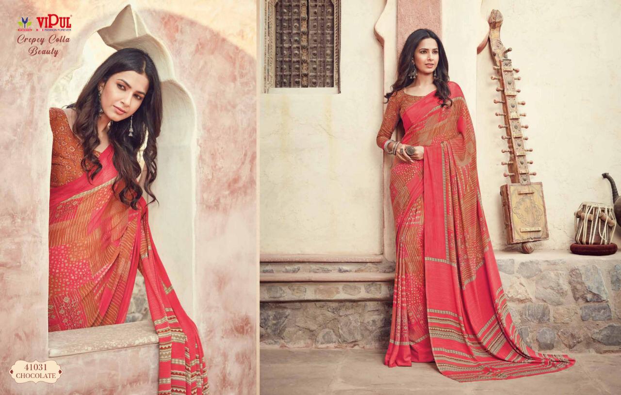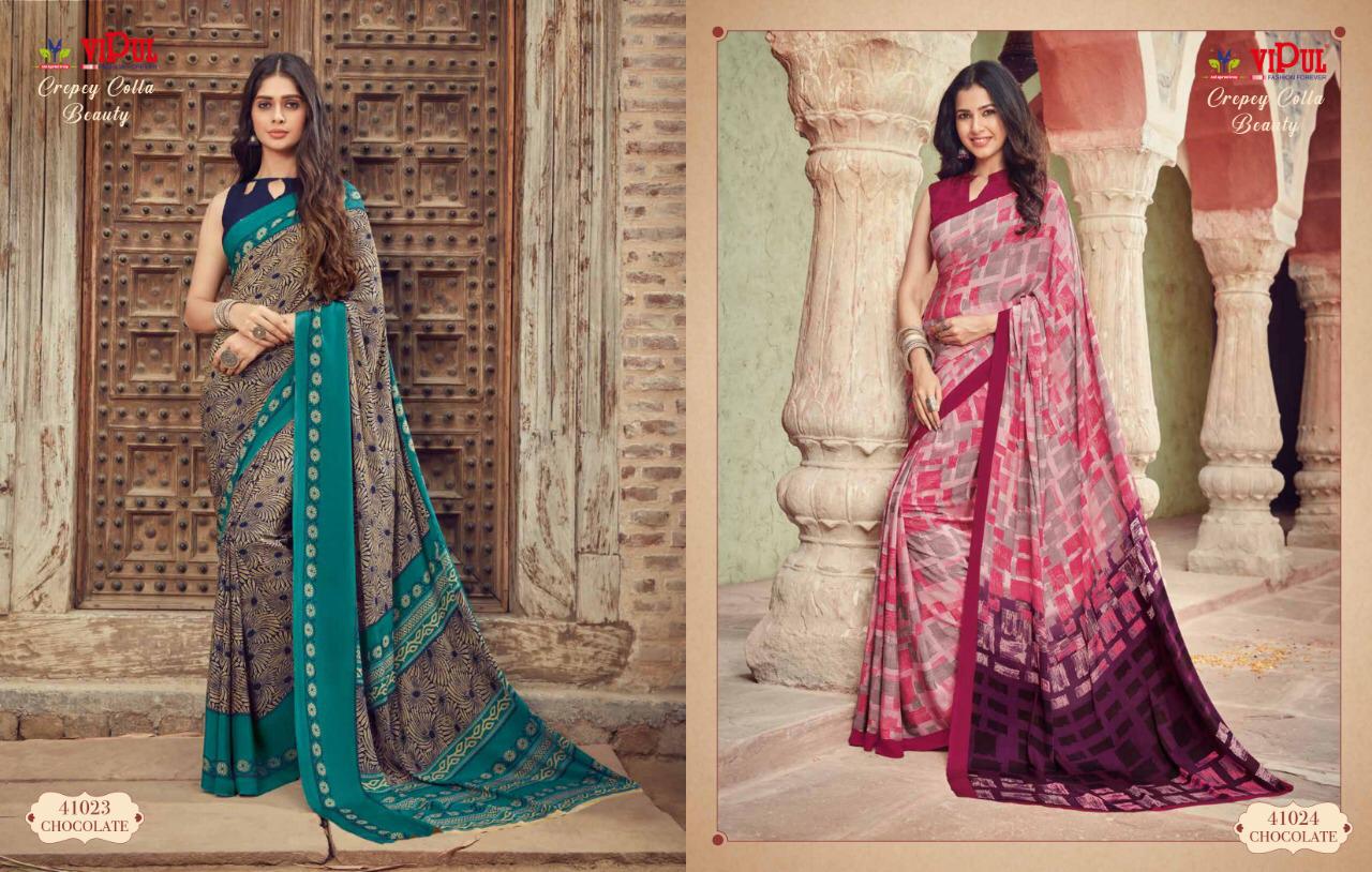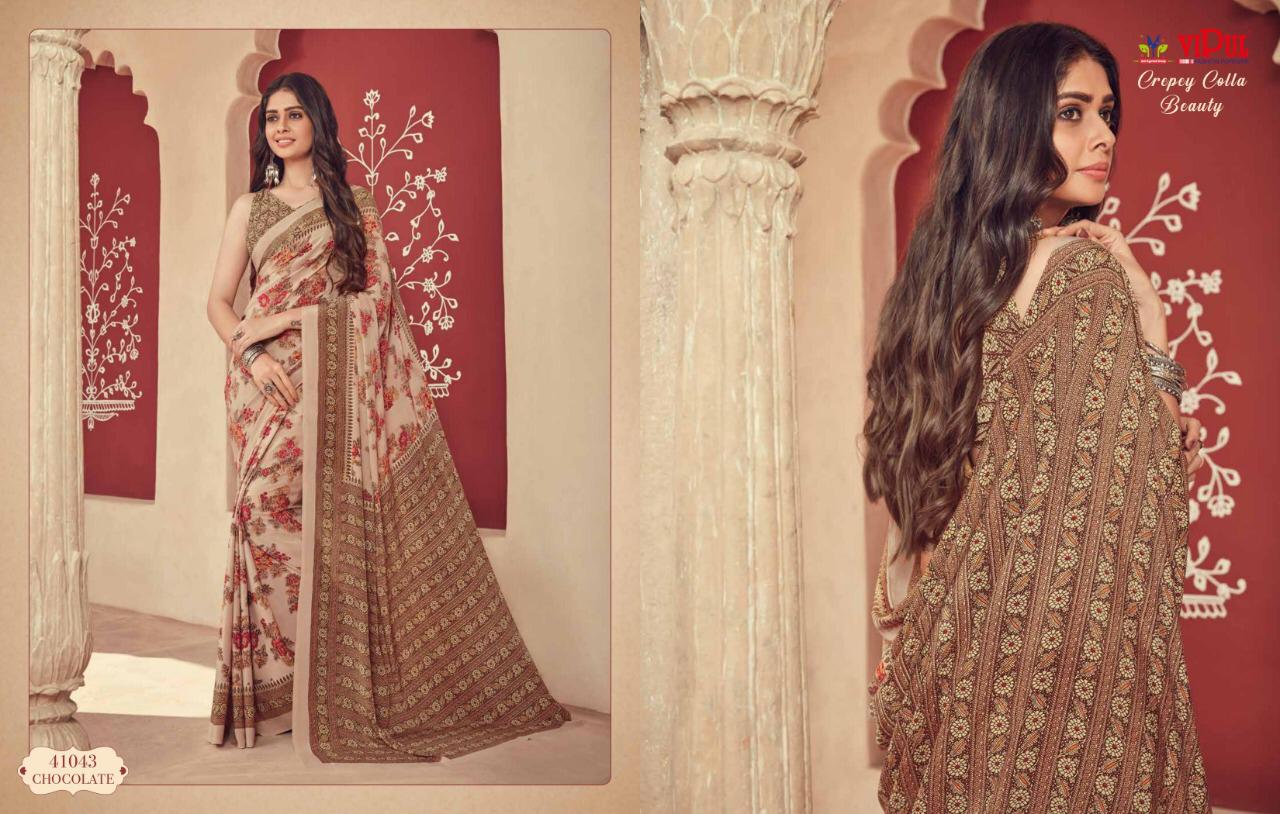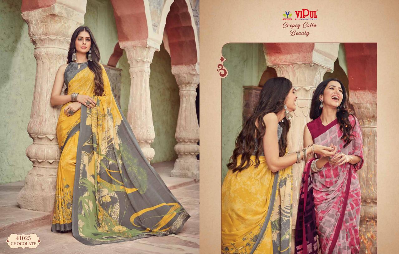 Vipul Cat 410 Crepey Colla Beauty Designer Sarees Wholesale Supplier And Dealer Surat