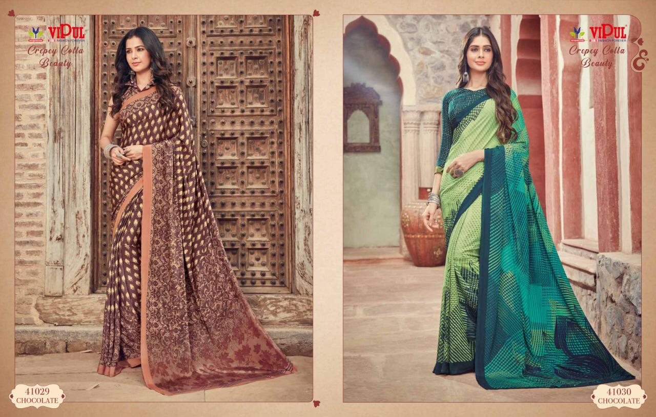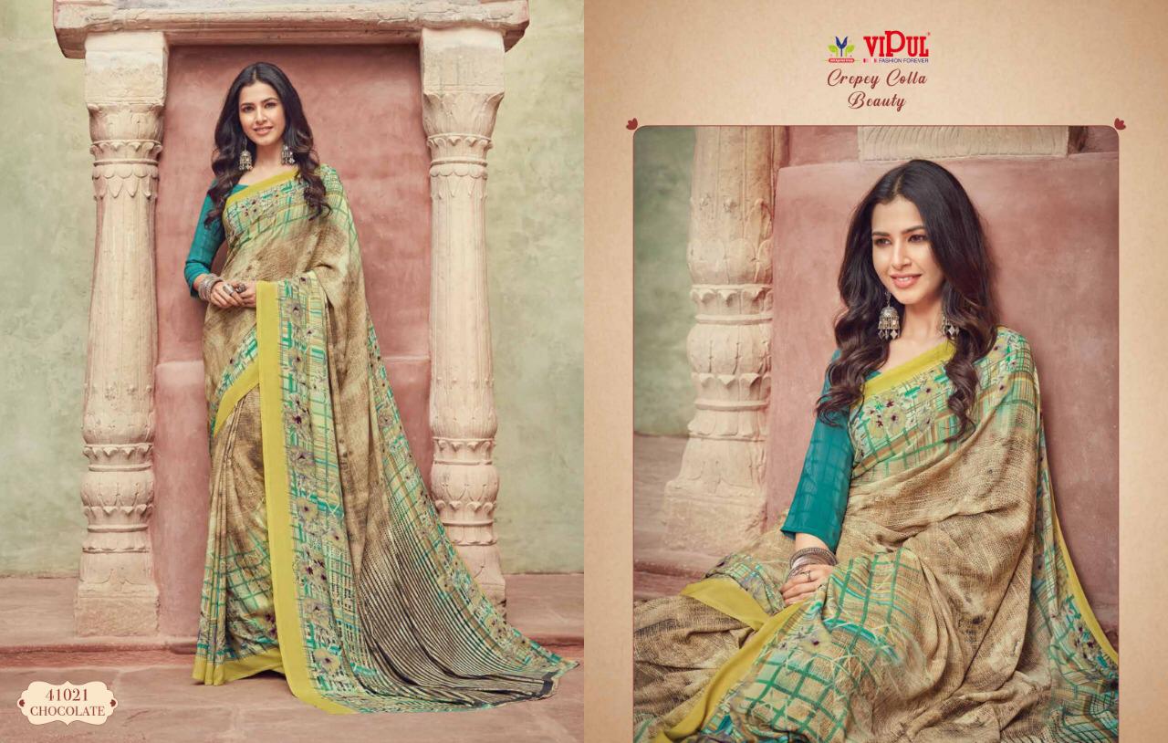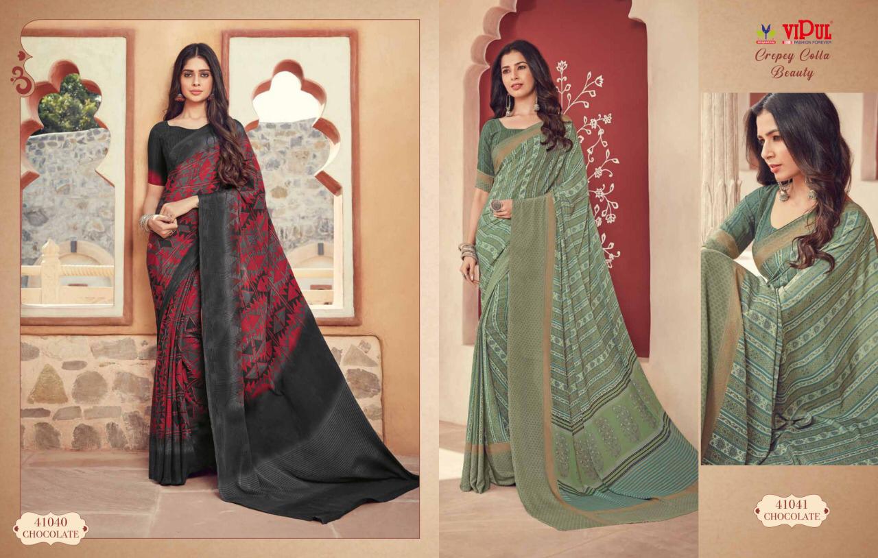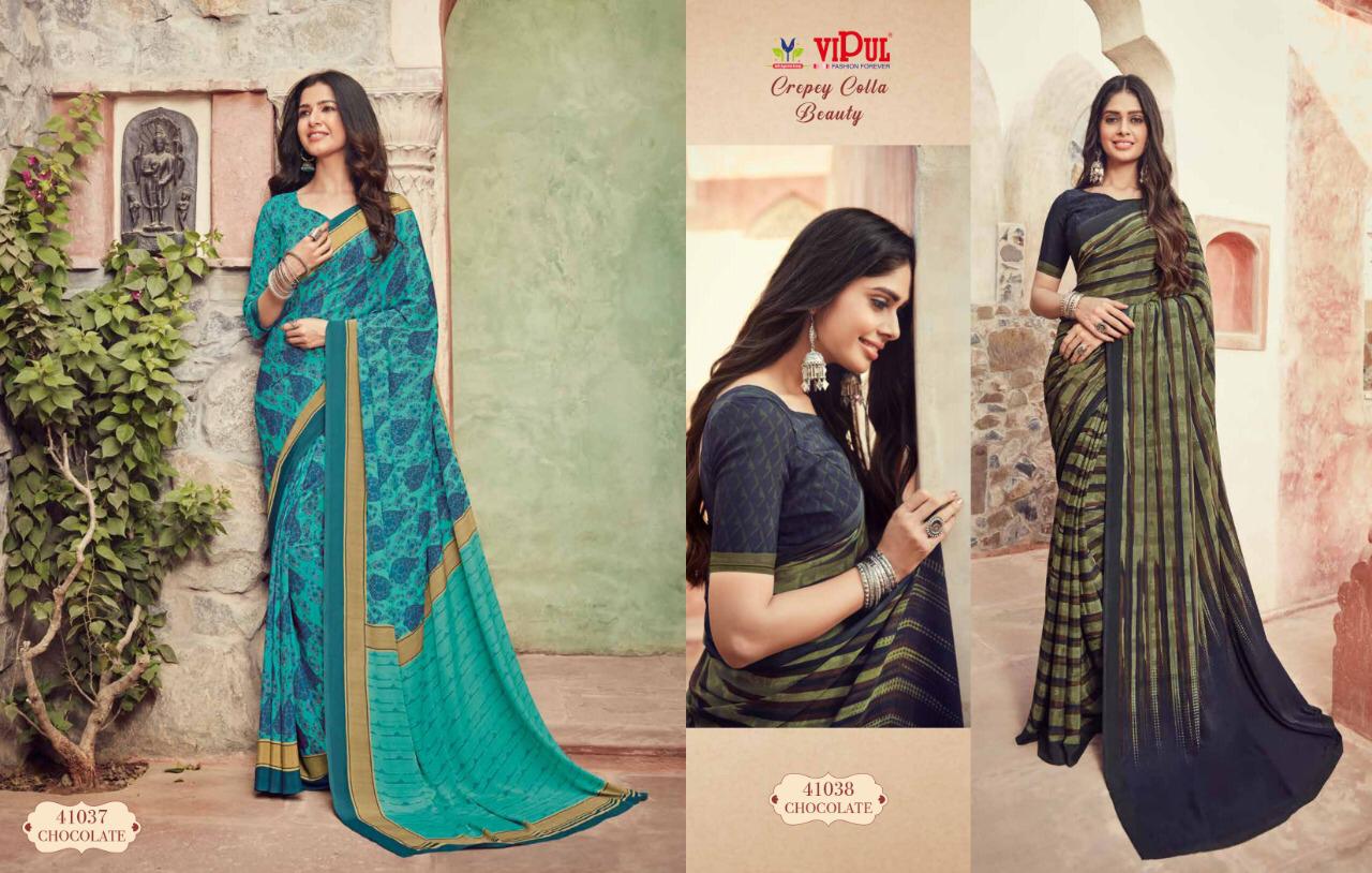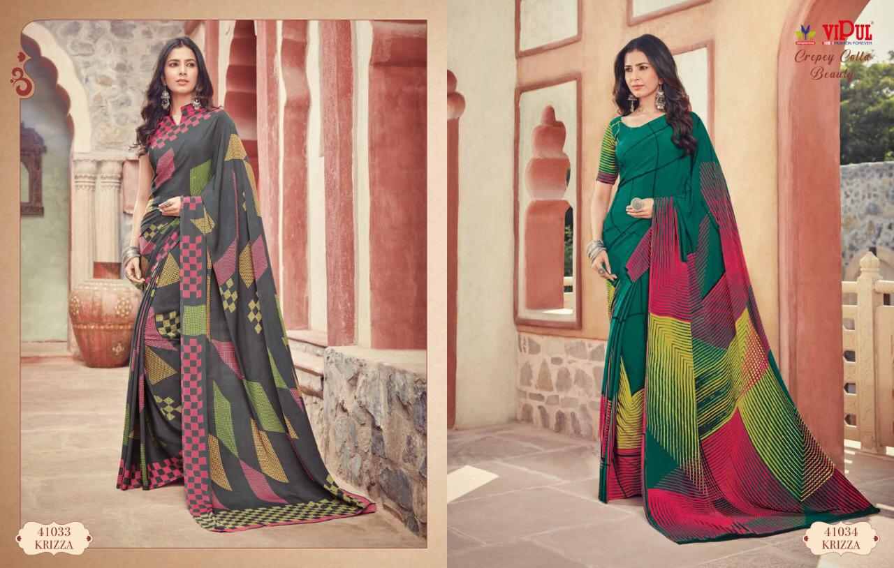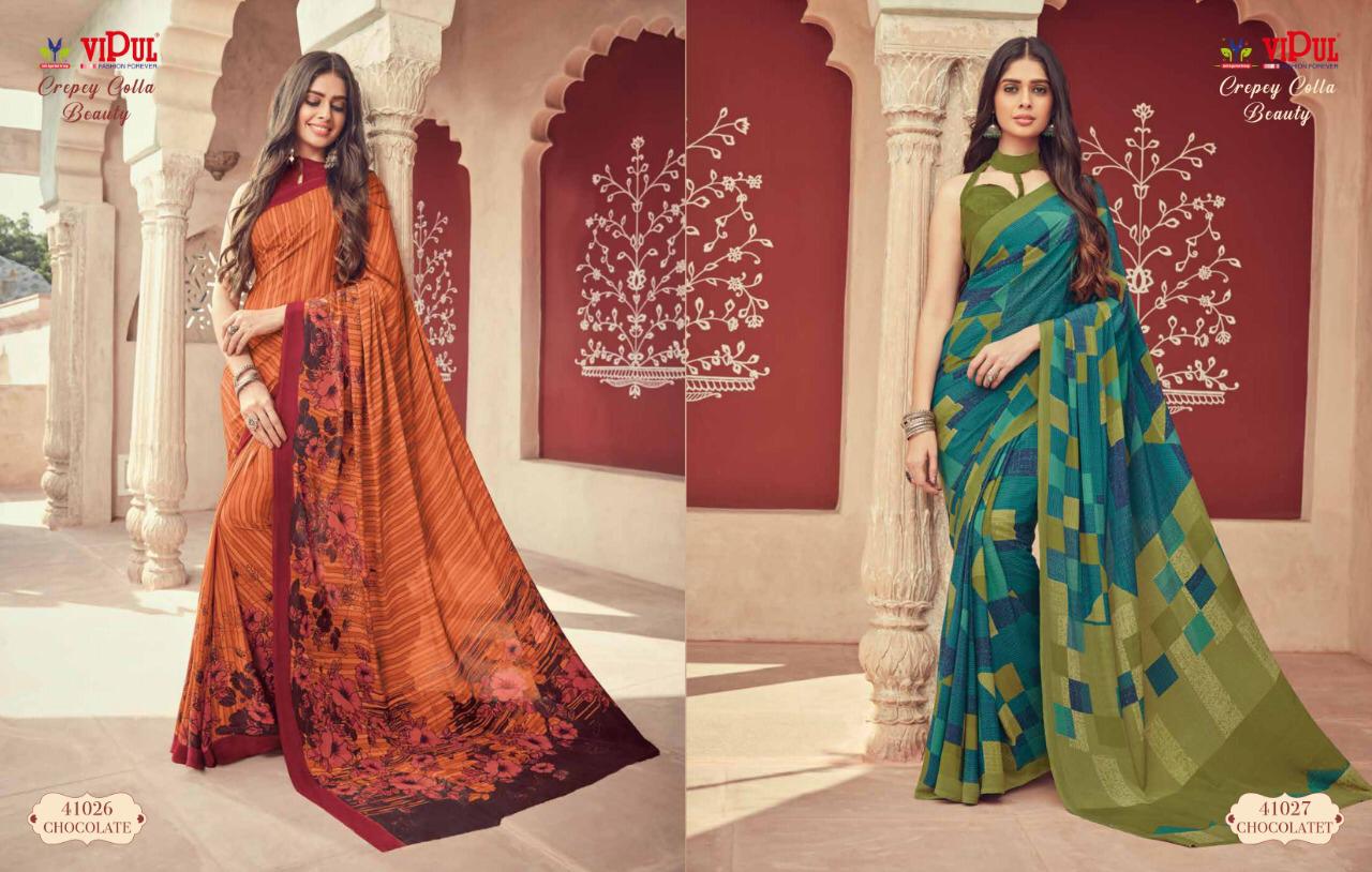 Vipul Cat 410 Crepey Colla Beauty Designer Sarees Wholesale Supplier And Dealer Surat