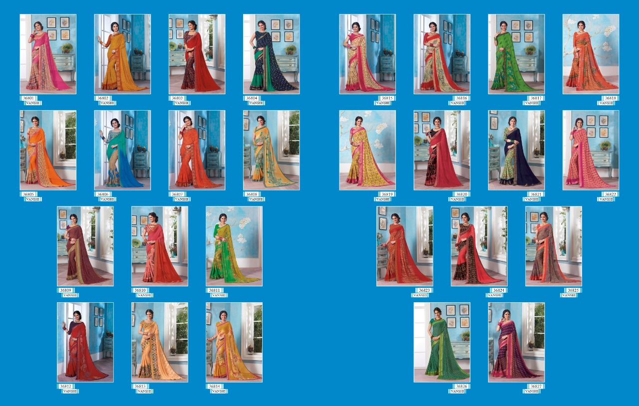Buy Online Vipul Florenza Series 36801 To 36827 Georgette Printed Designer Sarees Wholesale Supplier And Dealer Surat 27 Pcs of Full Catalogue at Wholesale Price. Looking for Vipul Florenza Series 36801 To 36827 Georgette Printed Designer Sarees Wholesale Supplier And Dealer Surat Full Catalouge at Best Price? Buy Now Vipul Florenza Series 36801 To 36827 Georgette Printed Designer Sarees Wholesale Supplier And Dealer Surat at Wholesale Rate of Rs 22788 with Total 27 Pcs from authroized dealer and supplier of VIPUL Brand. Cost of Each piece is just only Rs 844 which is very low and affordable price to resale the product in your retail store ,This is Surat based Wholesale Supplier & Dealer of VIPUL Brand. Click on Brand name to Know more about VIPUL Brand's products.Call or Whatsapp on 9898838984 for booking or enquiry