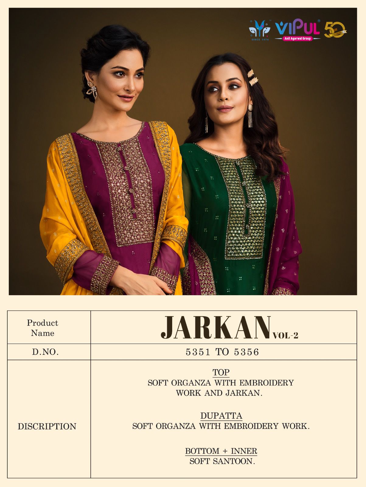 Vipul New Jarkan Vol 2 Organza Embroidery Work Designer Suits