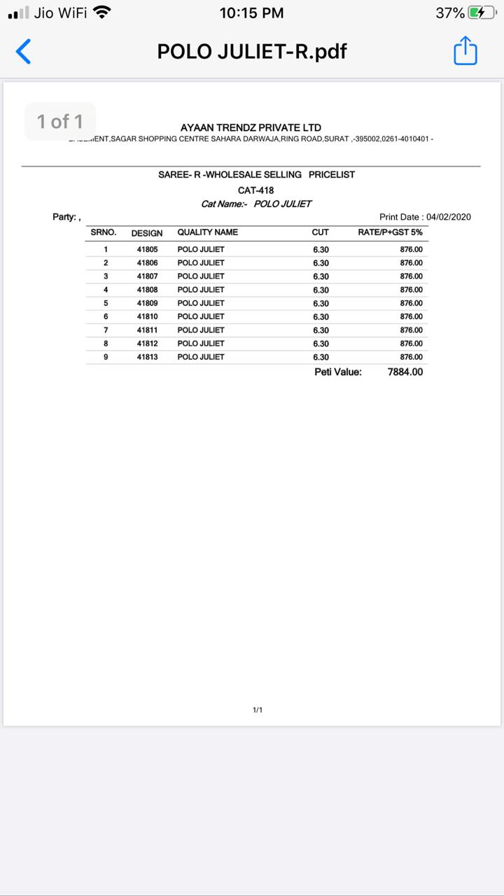 Buy Online Vipul Polo Juliet Cat 418 Series 41805 To 41813 Designer Party Wear Sarees Wholesale Supplier Gujarat 9 Pcs of Full Catalogue at Wholesale Price. Looking for Vipul Polo Juliet Cat 418 Series 41805 To 41813 Designer Party Wear Sarees Wholesale Supplier Gujarat Full Catalouge at Best Price? Buy Now Vipul Polo Juliet Cat 418 Series 41805 To 41813 Designer Party Wear Sarees Wholesale Supplier Gujarat at Wholesale Rate of Rs 7884 with Total 9 Pcs from authroized dealer and supplier of VIPUL Brand. Cost of Each piece is just only Rs 876 which is very low and affordable price to resale the product in your retail store ,This is Surat based Wholesale Supplier & Dealer of VIPUL Brand. Click on Brand name to Know more about VIPUL Brand's products.Call or Whatsapp on 9898838984 for booking or enquiry