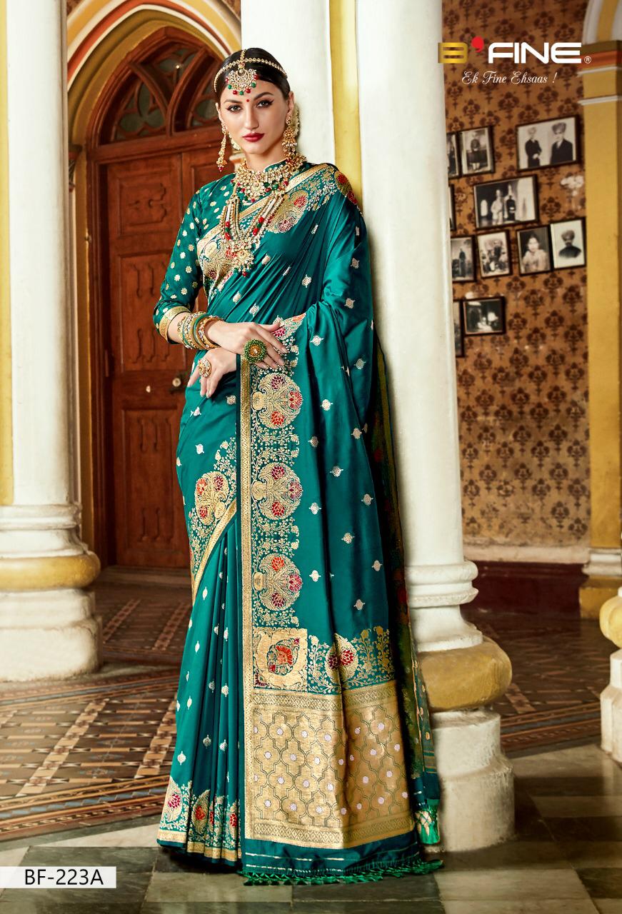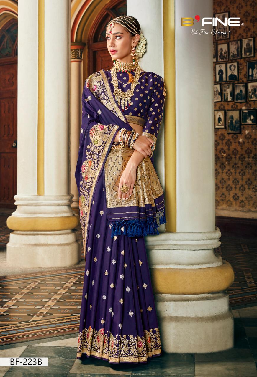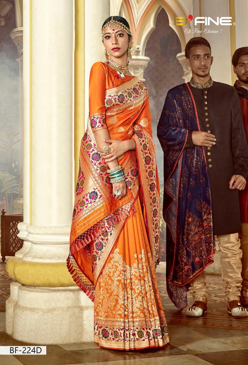 Brand - B FINE . Catlog name - Virasat . Series - BF - 221 A To 226 B. * P Banarsi silk * * set & loose & Singel * Single extra 100 GST 5 Percent Extra. Delivery from tomorrow |