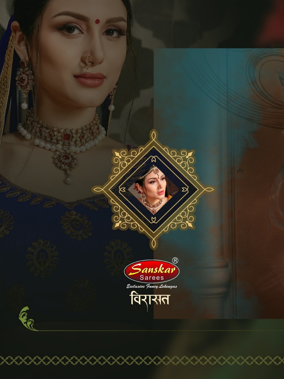 SANSKAR STYLE *VIRASAT* *Per Pcs RATE - 1495/-* Set to set. GST 12 Percent Extra. Delivery 2 days *SILK LEHENGA* *SWAROVSKI DIAMOND WORK* HEAVY WORK BLOUSE AND DUPATTA 6 DESIGN CATALOG. |